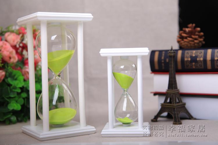 Песочные часы белые с салатовым песком на 60 минут