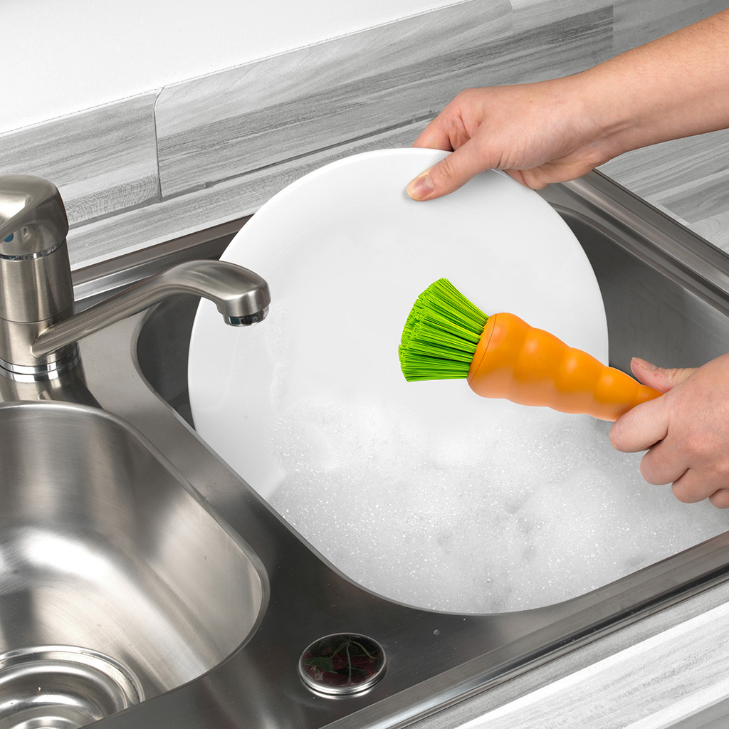 Щётка для мытья посуды bunny. На кухне важно организовать пространство так, чтобы было удобно работать, но при этом сохранить красоту комнаты. Чтобы сделать кухню яркой и необычной, достаточно использовать аксессуары испанского бренда Balvi. Щетка для мытья посуды Bunny – это необычный, но полезный предмет, который нужен в любом доме. Щетка выполнена в виде морковки, которая в нерабочем состоянии устанавливается на подставку в виде зайца. Пользоваться предметом удобно, а в свободное время он не занимает много места и поднимает настроение. • Оригинальный дизайн – не только полезный предмет, но и оформление кухни • Практичность – с помощью щетки можно отмыть любые загрязнения • Долговечность – набор прослужит долго без потери внешнего вида На кухне важно организовать пространство так, чтобы было удобно работать, но при этом сохранить красоту комнаты. Чтобы сделать кухню яркой и необычной, достаточно использовать аксессуары испанского бренда Balvi. Щетка для мытья посуды Bunny – это необычный, но полезный предмет, который нужен в любом доме. Щетка выполнена в виде морковки, которая в нерабочем состоянии устанавливается на подставку в виде зайца. Пользоваться предметом удобно, а в свободное время он не занимает много места и поднимает настроение. • Оригинальный дизайн – не только полезный предмет, но и оформление кухни • Практичность – с помощью щетки можно отмыть любые загрязнения • Долговечность – набор прослужит долго без потери внешнего вида  развернуть описание ▼