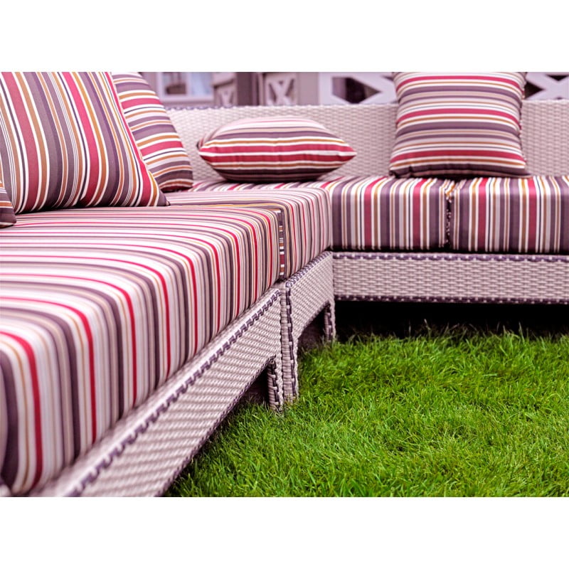 Диван с подушками bellarden орхидея, садовая мебель. Диван с подушками Bellarden Орхидея выполнен в двух модулях, которые могут быть размещены в любой части лаунж зоны. Необычное дизайнерское исполнение дает возможность варьирования конструкции. Каждый модуль может использоваться как самостоятельное изделие, так и в комплекте садовой мебели. Для оформления мягких подушек и удобного сидения использована яркая ткань. Размеры дивана дают максимум комфорта при размещении небольшой компании. Диван, см 210х72.5х73.5 Завершающий модуль, см 140х72.5х73.5 Центральный модуль, см 66х72.5.73.5 Материал каркаса Всепогодный алюминий Материал изделия Искусственный ротанг