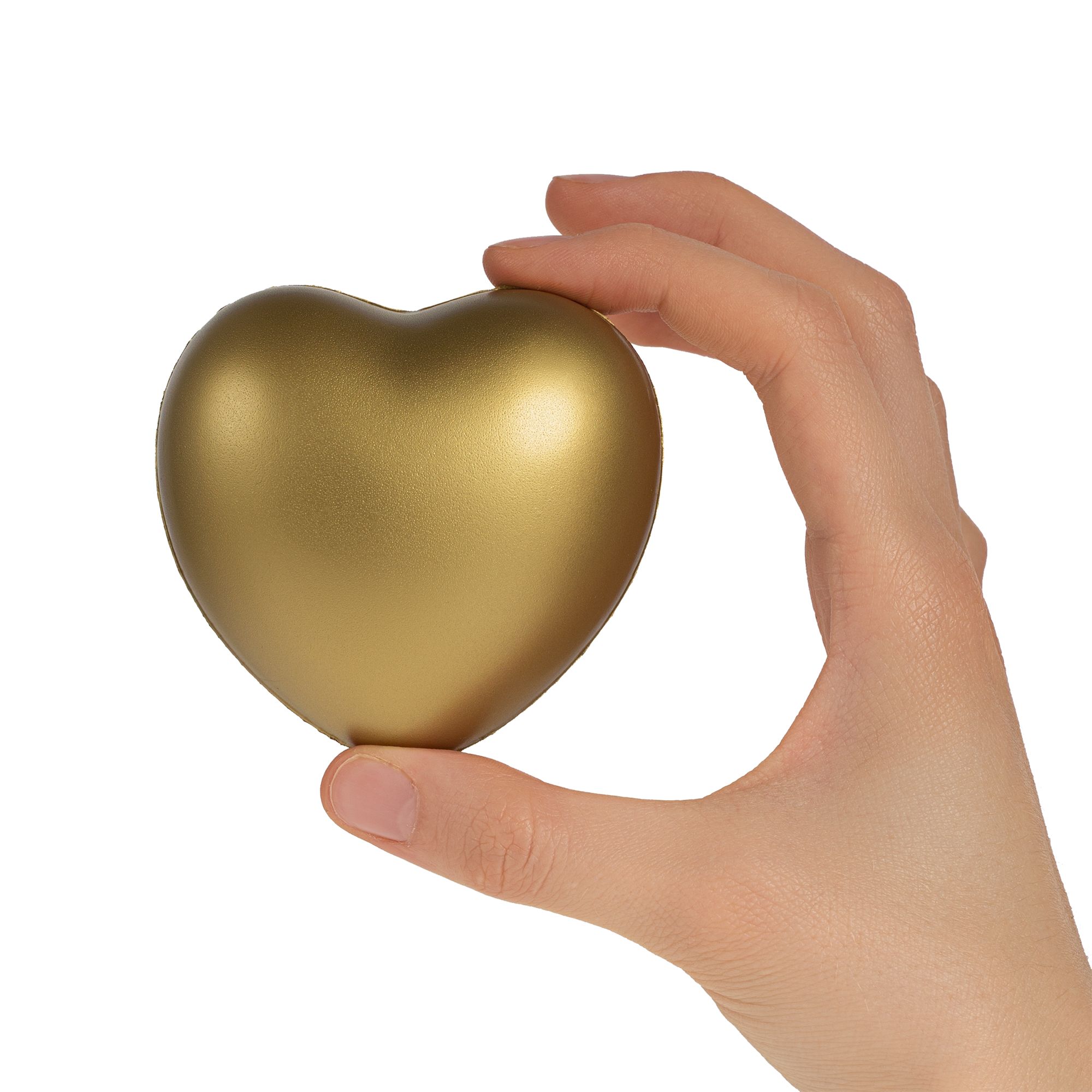 Антистресс «сердце», золотистый.   Размеры 7,3х6,9х4,9 см  Материал вспененный каучук  Вес (1 шт.) 26,00 г  Транспортная упаковка 66,0x36,0x27,0 см  Вес 6,50 кг  Объем упаковки 0,064 м?  Количество в упаковке 250 шт.  Поставляется в полиэтиленовом пакете.  Внимание! Возможны трещины на краске!  развернуть описание ▼