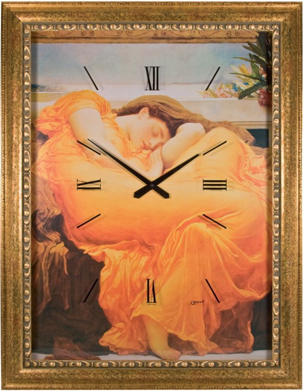 Настенные часы lowell 11374. Настенные часы Lowell 11374 Настенные часы-картины Lowell 11374 итальянского бренда Lowell - великолепный подарок и украшение интерьера. Яркие и привлекательные, создающие ощущение настоящего живописного полотна, они станут изюминкой любого помещения и интерьера. Часы-картина в деревянной раме с репродукцией Пылающий июнь художника Фредерика Лейтона . Временные рамки обозначены большими римскими цифрами и визирами (черточками), которые нанесены при помощи старинной техники сериографии на внутренней стороне стекла вручную. Художественное оформление ручной работы в стиле сусального золота. Бесшумный кварцевый механизм немецкой фирмы UTS. Часы Бренда Lowell производятся в Италии, начиная с 1972 г. Особенности часов Lowell 11374:Механизм: кварцевый Размер: 72*92 см Корпус: дерево Производитель (страна): Lowell (Италия)