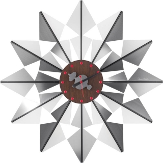 Кварцевые настенные часы Tomas Stern 8026 в современном стиле. Эти оригинальные настенные часы в стиле модерн выполнены по мотивам известной модели часов The Flock of Butterflies Clock легендарного дизайнера - Джорджа Нельсона. Название происходит от многомерной, напоминающей крыло бабочки формы часов. Вокруг теплого, деревянного циферблата многочисленные металлические треугольники. Их отражающие поверхности вспыхивают светом, придавая часам общий калейдоскопический эффект. Корпус изготовлен из металла и дерева. Механизм Young Town с плавным ходом секундной стрелки.