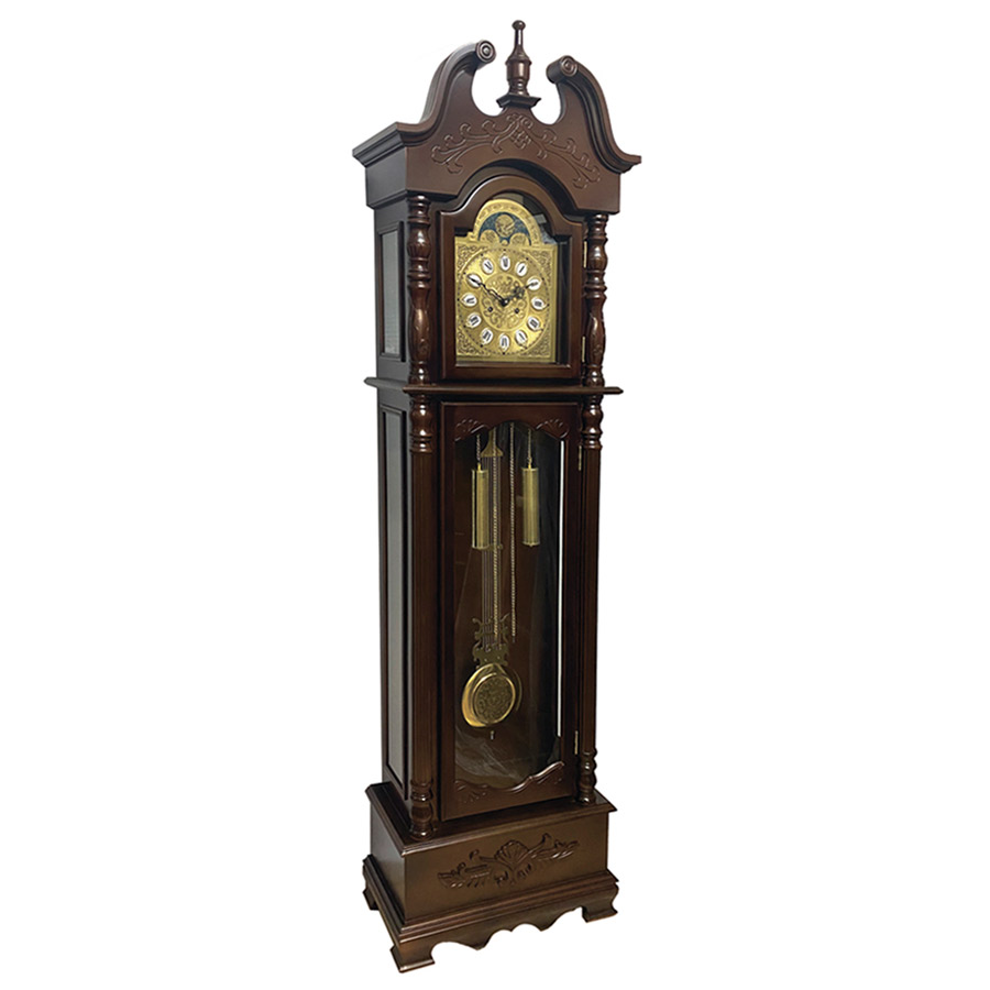 Напольные механические часы dinastiya 8310. Напольные механические часы Dinastiya 8310 Напольные механические часы Dinastiya 8310 имеют надежный механизм и качественный корпус из твердой липы, покрытый рояльным лаком, сохраняющим долговечность покрытия на долгие годы. Механизм механический с цепным подвесом гирь, пружинный завод 31 день. Часовой по количеству часов и получасовой бой 1 раз. Ручное отключение боя Великолепный фронтон в виде «медвежьих лап» (в виде короны) увенчан резным навершием. Верхняя люцерна и нижняя дверца часов, обрамлены каннелированными колоннами с изящными , с богатой резьбой, капителиями. Циферблат чеканный с римскими цифрами, фигурные стрелки, маятник в виде лиры. Маятник и гири металлические, золотистого цвета. Фронтон резной. Ручная резьба по дереву. Имитация лунного календаря. Характеристики часов Dinastiya 8310: Корпус: дерево. Цвет: орех. Размер часов: 212x61x27 см Упаковка: целиком в месте с тумбой. Размер упаковки: 217*66*33 см Вес: 35 кг. Гарантия: 1 год Бой каждые полчаса и час по количеству часов. Завод (ход): 31 день Секундная стрелка: нет. Без мелодии. Размер, см : 212x61x27 Цвет : Орех Материал : Дерево Механизм : Механический Функции : Бой c отключением СКИДКИ : Индивидуальные