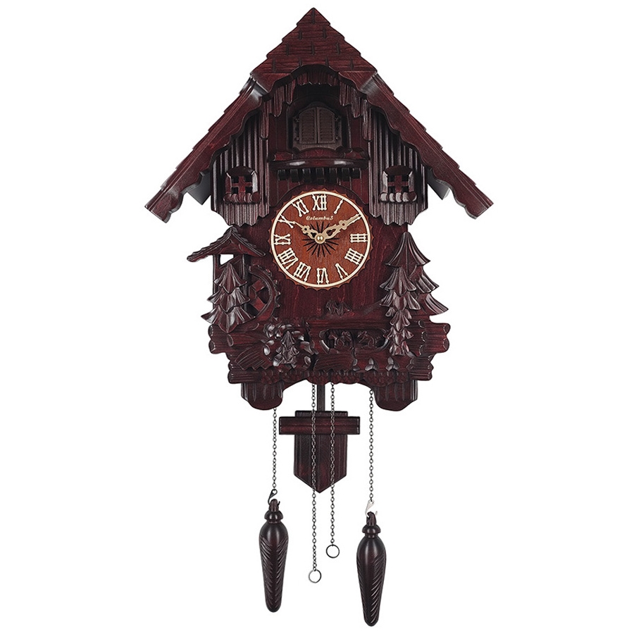 Часы с кукушкой columbus cq-018 "водяная мельница". Часы с кукушкой Columbus CQ-018 Водяная мельница Часы с кукушкой Columbus CQ-018 Водяная мельница имеют надежный кварцевый механизм. Циферблат с римскими цифрами. Цифры и стрелки сделаны из дерева. Кукушка в домик прячется. При срабатывании кукушка открывает ротик и взмахивает крыльями. Ночной режим автоматический (с 22.00 до 6.00) и ручной (в темноте кукушка не срабатывает). Размер часов: 520х420х195мм(без учета гирь) Материал часов: Дерево. Производство: Германия-Китай. Комплектация: Часы, инструкция на русском языке, упаковка. Батарейки: В комплект не входит.