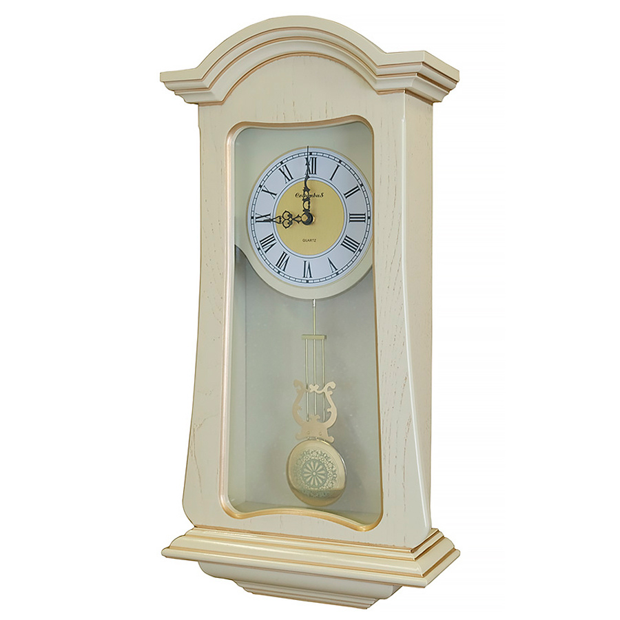 Настенные часы Columbus Co-1828 -Pg-Iv с маятником и боем имеют надежный кварцевый механизм. работающий от батареек.