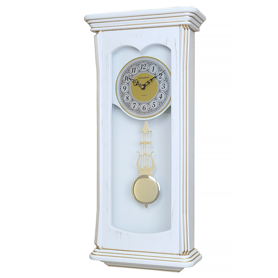 Настенные часы columbus co-1834-pg-wh. Настенные часы Columbus Co-1834 PG-WH Настенные часы Columbus Co-1834 PG-WH с маятником и боем имеют надежный кварцевый механизм на батарейках (батарейки в комплект не входят). Корпус : натуральное дерево с резным фронтоном. Механизм : кварцевый. Размер: 67,5х31х12 см Цвет: Белый с золотой патиной. Мелодия : 4 типа - Westminster и часовой бой (в разных сочетаниях). Есть вариант только почасовой бой Бим-бом Программное отключение звука с 22. 00 до 5. 00 часов Питание : 4 элемента типа АА (R6). Батарейки в комплект не входят. Вес в упаковке : 5. 3 кг Размер, см : 67,5х31х12 Цвет : Белый с золотой патиной Материал : Дерево Механизм : Кварцевый (Германия) Функции : Мелодия, Бой, Ночной режим