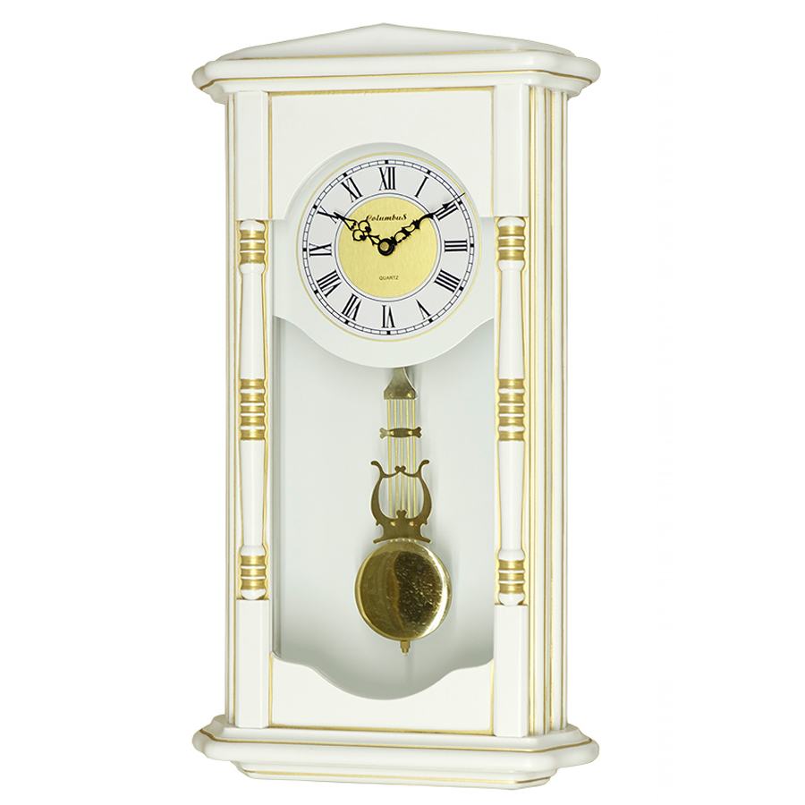 Настенные часы columbus co-1890-pg-wh. Настенные часы Columbus Co-1890-PG-WH с маятником и боем Настенные часы Columbus Co-1890-PG-WH с маятником и боем имеют надежный кварцевый механизм. Корпус : натуральное дерево с резным фронтоном. Механизм : кварцевый. Размер: 60х12х33 см Цвет: белый с золотой патиной. Мелодия : 4 типа - Westminster и часовой бой (в разных сочетаниях). Есть вариант только почасовой и получасовой бой. Программное отключение звука с 22. 00 до 5. 00 часов Питание : 4 элемента типа АА (R6). Батарейки в комплект не входят. Вес в упаковке : 4. 6 кг Размер, см : 60х12х33 Цвет : Белый с золотой патиной Материал : Дерево Механизм : Кварцевый Функции : Мелодия, Бой, Ночной режим