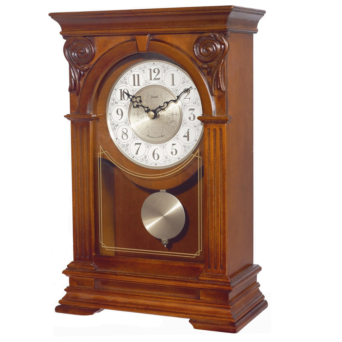 Настольные часы восток т-8872-1. Настольные часы Восток Т-8872-1 Необычайно эксклюзивные часы Восток Т-8872-1 Российского производства Vostok – прежде всего Доступные модели обычным обывателям, ценящим декоративные изысканные очертания стильных форм и широчайшими функциями, эти прекрасные и доступные часы найдут свое место в любом интерьере. Кварцевый механизм отличается надежностью и точностью , не боится встрясок, ударов и нет необходимости в постоянном подзаводе. Бой. Мелодии: Westminster, , Ave Maria, Bim Bam. Функция отключения мелодии на ночь, регулятор громкости. Маятник. Корпус этих часов выполнен из дерева (темный орех) – этот материал прослужит Вам долгие годы и сохранит свой первоначальный вид. Классический белый циферблат с серебристой вставкой в центре. Временные рамки обозначены большими арабскими цифрами – Вы легко определите текущее время. Характеристики Восток Т-8872-1 Дополнительные функции - почасовой бой, функция отключения боя, регулятор громкостиМеханизм - кварцевыйРазмер - 23,8х31х13,8 смКорпус - деревоПроизводитель (страна) - Восток (Россия)Мелодия - Westminster, Ave Maria, Bim Bam Размер, см : 23,8х31х13,8 Материал : Дерево Механизм : Кварцевый Функции : Мелодия, Бой, Ночной режим