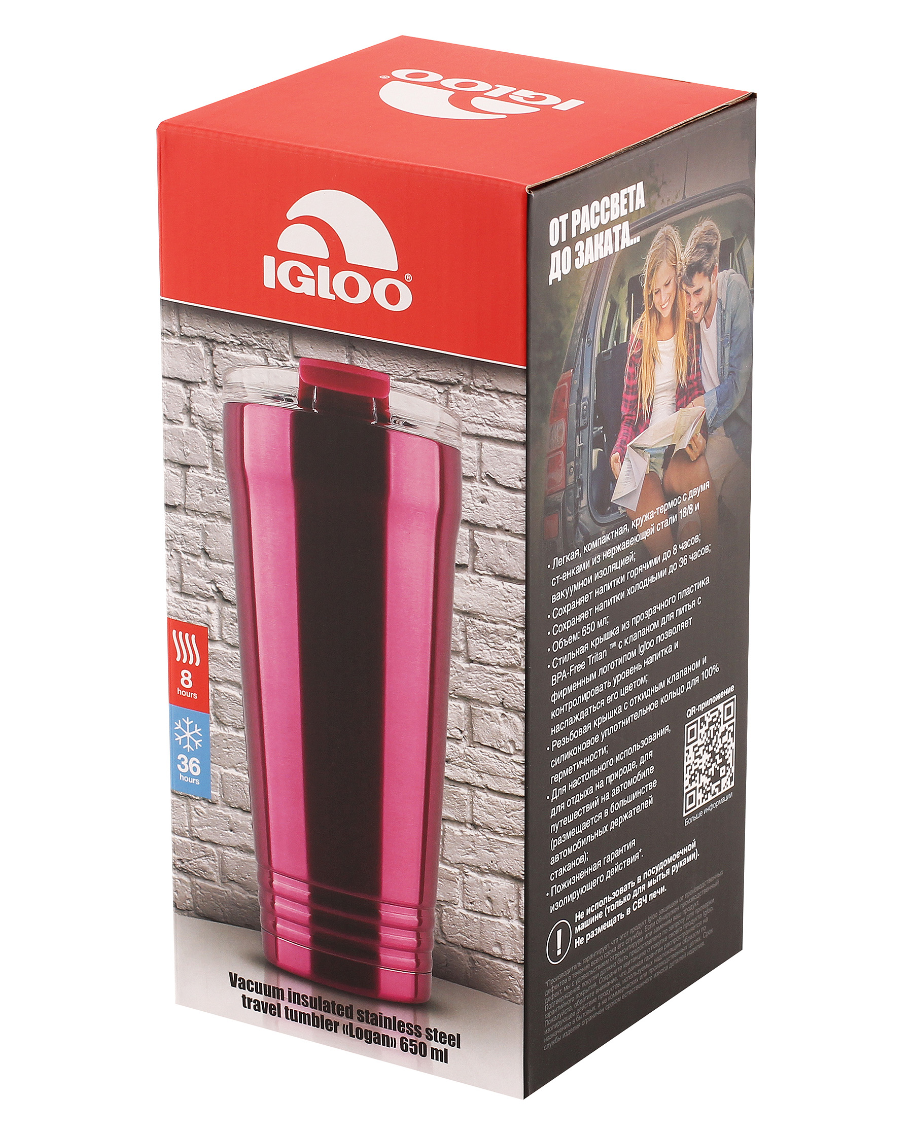Кружка-термос из нержавеющей стали 650 мл igloo logan purple. Внешние размеры: Длина: 9. 2 см Ширина: 9. 2 см Высота: 21. 81 см Объем: 650 миллилитров (22 ounces) Материал корпуса: Нержавеющая сталь 18/8 Материал колбы: Нержавеющая сталь 18/8 Пробка: Пластиковая Tritan™ на резьбе Сохраняет горячее: до 8 часов Сохраняет холодное: до 36 часов Особенности: Клапан «Open-close», Подходит к большинству автомобильных держателей стаканов Вес: 0. 37 кг • Легкая, компактная, небьющаяся кружа-термос с двумя стенками из нержавеющей 18/8 стали и вакуумной изоляцией. • Стильная крышка из прозрачного пластика BPA-Free TRITAN™ с клапаном для питья с фирменным логотипом Igloo позволяет контролировать уровень напитка и наслаждаться его цветом. • Резьбовая крышка с откидным клапаном и силиконовое уплотнительное кольцо для 100% герметичности. • Для настольного использования, для отдыха на природе, для путешествий на автомобиле (размещается в большинстве автомобильных держателей стаканов). • Пожизненная гарантия изолирующего действия*. • Не использовать в посудомоечной машине (только для мытья руками). • Не размещать в СВЧ печи. Серия «LOGAN» STAINLESS STEEL VACUUM INSULATED TUMBLER • Серия представлена в четырех цветах. • Доступные объемы: 650 и 887 мл. Где бы Вы ни были, на работе или на отдыхе, кружка-термос Logan находится с Вами, чтобы Вы всегда наслаждались своим напитком. Вакуумная изоляция с двойными стенками позволяет напитку часами оставаться горячим или холодным, а защитный клапан на крышке обеспечивает абсолютную герметичность. Независимо от того, проводите ли Вы день в мастерской или выходные за городом, эта кружка-термос гарантированно обеспечит Вам превосходный результат. Галерея: