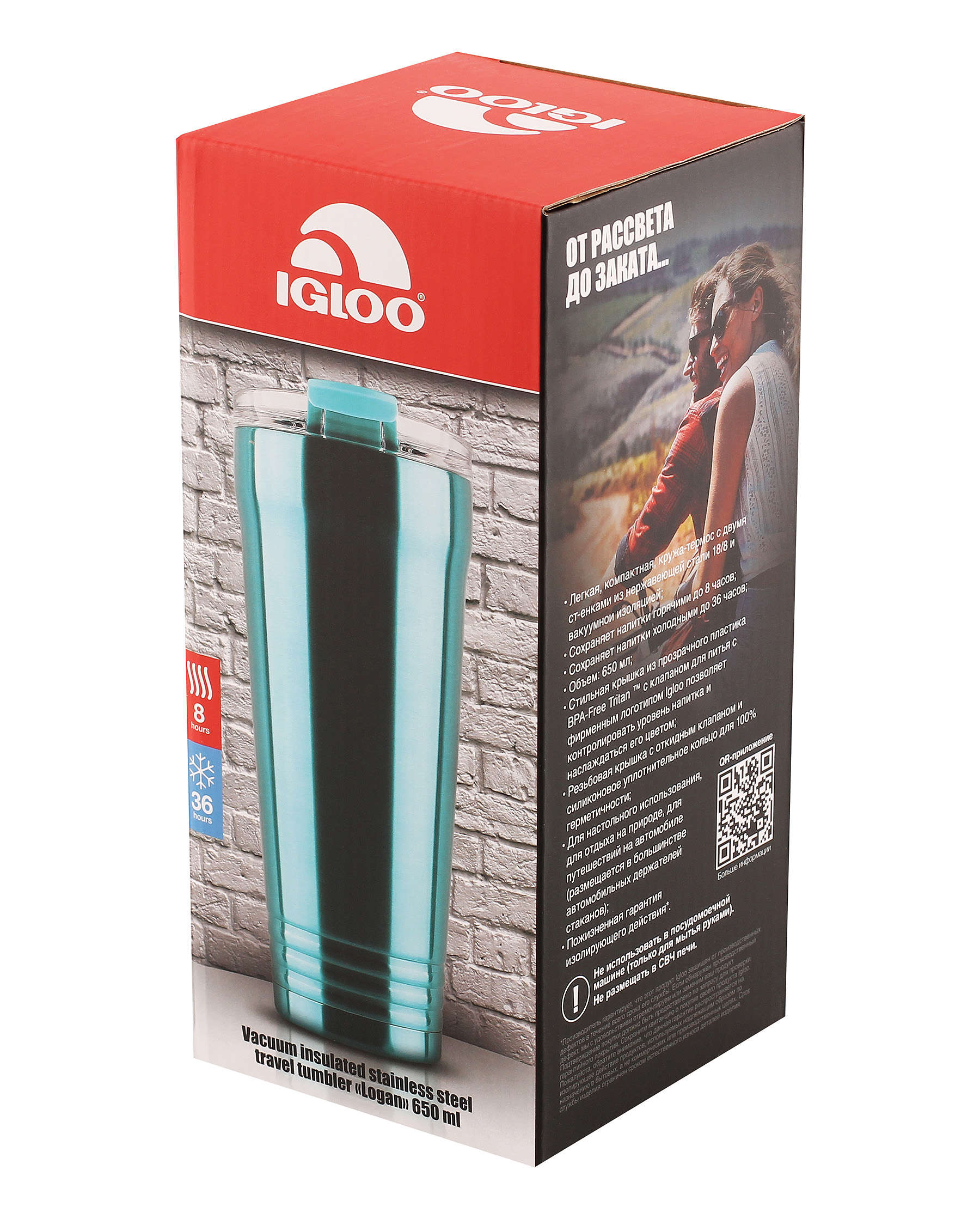 Кружка-термос из нержавеющей стали 650 мл igloo logan aqua. Внешние размеры: Длина: 9. 2 см Ширина: 9. 2 см Высота: 21. 81 см Объем: 650 миллилитров (22 ounces) Материал корпуса: Нержавеющая сталь 18/8 Материал колбы: Нержавеющая сталь 18/8 Пробка: Пластиковая Tritan™ на резьбе Сохраняет горячее: до 8 часов Сохраняет холодное: до 36 часов Особенности: Клапан «Open-close», Подходит к большинству автомобильных держателей стаканов Вес: 0. 37 кг • Легкая, компактная, небьющаяся кружа-термос с двумя стенками из нержавеющей 18/8 стали и вакуумной изоляцией. • Стильная крышка из прозрачного пластика BPA-Free TRITAN™ с клапаном для питья с фирменным логотипом Igloo позволяет контролировать уровень напитка и наслаждаться его цветом. • Резьбовая крышка с откидным клапаном и силиконовое уплотнительное кольцо для 100% герметичности. • Для настольного использования, для отдыха на природе, для путешествий на автомобиле (размещается в большинстве автомобильных держателей стаканов). • Пожизненная гарантия изолирующего действия*. • Не использовать в посудомоечной машине (только для мытья руками). • Не размещать в СВЧ печи. Серия «LOGAN» STAINLESS STEEL VACUUM INSULATED TUMBLER • Серия представлена в четырех цветах. • Доступные объемы: 650 и 887 мл. Где бы Вы ни были, на работе или на отдыхе, кружка-термос Logan находится с Вами, чтобы Вы всегда наслаждались своим напитком. Вакуумная изоляция с двойными стенками позволяет напитку часами оставаться горячим или холодным, а защитный клапан на крышке обеспечивает абсолютную герметичность. Независимо от того, проводите ли Вы день в мастерской или выходные за городом, эта кружка-термос гарантированно обеспечит Вам превосходный результат. Галерея: