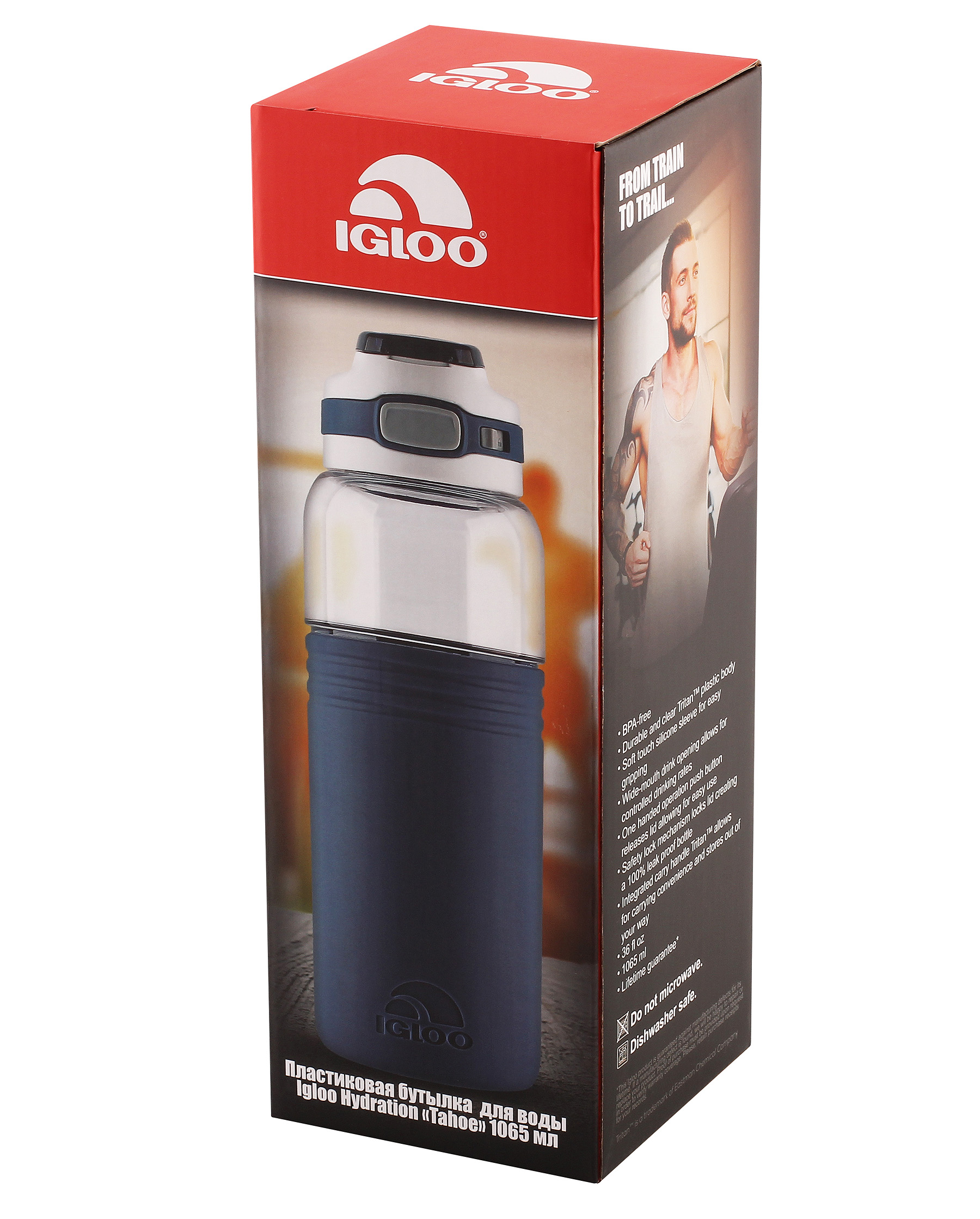 Бутылка для воды и напитков 1.06 литра igloo tahoe 36 dark denim. Внешние размеры: Длина: 8. 06 см Ширина: 8. 06 см Высота: 25. 04 см Объем: 710 миллилитра (36 ounces) Материал корпуса: Пластик Tritan™ Пробка: Съемная, пластиковая на резьбе Особенности: Кнопка-фиксатор «Lid Lock», откидное кольцо для переноски Вес: 0. 32 кг • Пластик BPA-Free — Состав пластика не содержит Бисфенол А. • Прочный и прозрачный пластиковый корпус Tritan™. • Мягкий силиконовый чехол на корпусе бутылки для удобного захвата. • Широкое питьевое горлышко позволяет дозировать напиток. • Технология «AUTO CHUG™» — Кнопка на крышке обеспечивает открытие бутылки одной рукой. • Функция блокировки «Lid Lock» при помощи кнопки-слайдера исключает случайное открытие. • Предохранительный замок крышки для 100% герметичности защищает от случайного проливания. • Встроенная в крышку ручка Tritan™ для удобства переноски. • Подходит для мытья в посудомоечных машинах. • Не подходит для использования в СВЧ печи. Серия «TAHOE» TRITAN™ & SILICONE CHUG BOTTLE • Серия представлена в четырех цветах. • Доступные объемы: 710 и 1. 065 мл. С Вашего раннего утра и на протяжении всего дня бутылка для воды Tahoe находится рядом с Вами. Силиконовый чехол и встроенная ручка для переноски обеспечат легкость в движении, а крышка c замком от случайного проливания сохранит питьевое горлышко чистым. Делаете ли Вы перерыв в течение дня или занимаетесь спортом, эта бутылка с превосходным дизайном и функционалом всегда будет для Вас полезным сопровождением. Галерея:
