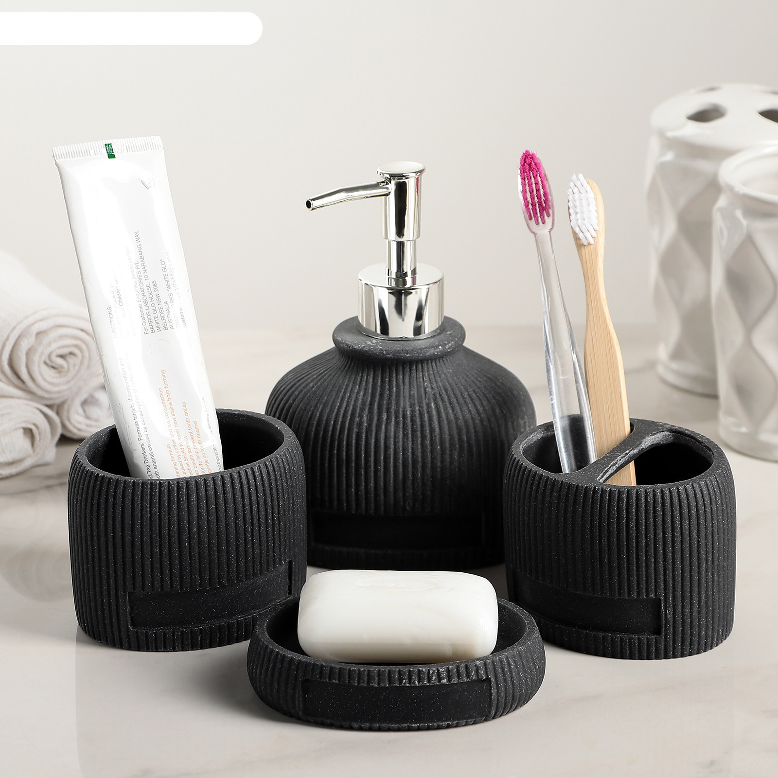 Набор аксессуаров для ванной комнаты, 4 предмета хато, цвет чёрный