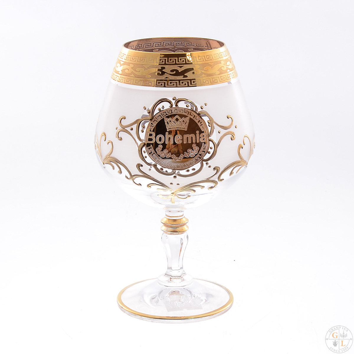 Виктория набор бокалов для бренди Bohemia Версаче 400мл Хрустальное стекло из Чехии – это продукт высочайшего качества, известный во всем мире. Широкий ассортимент включает не только предметы сервировки ежедневного пользования, но и настоящие шедевры посудного искусства. Такие, как бокалы для бренди Bohemia Версаче. О каждой части декора можно слагать поэмы: строгий золотой кант с элементами флористики, золотые вензеля ручной работы, шикарная ножка с трехкратным утолщением изысканной формы, матированное стекло чаши и в завершение – королевский знак качества, на котором значится название бренда. Шикарны в качестве подарка и придадут любому застолью торжественность и шик.