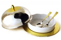 Круглое блюдо для горячего с крышкой с фарфоровой вставкой с