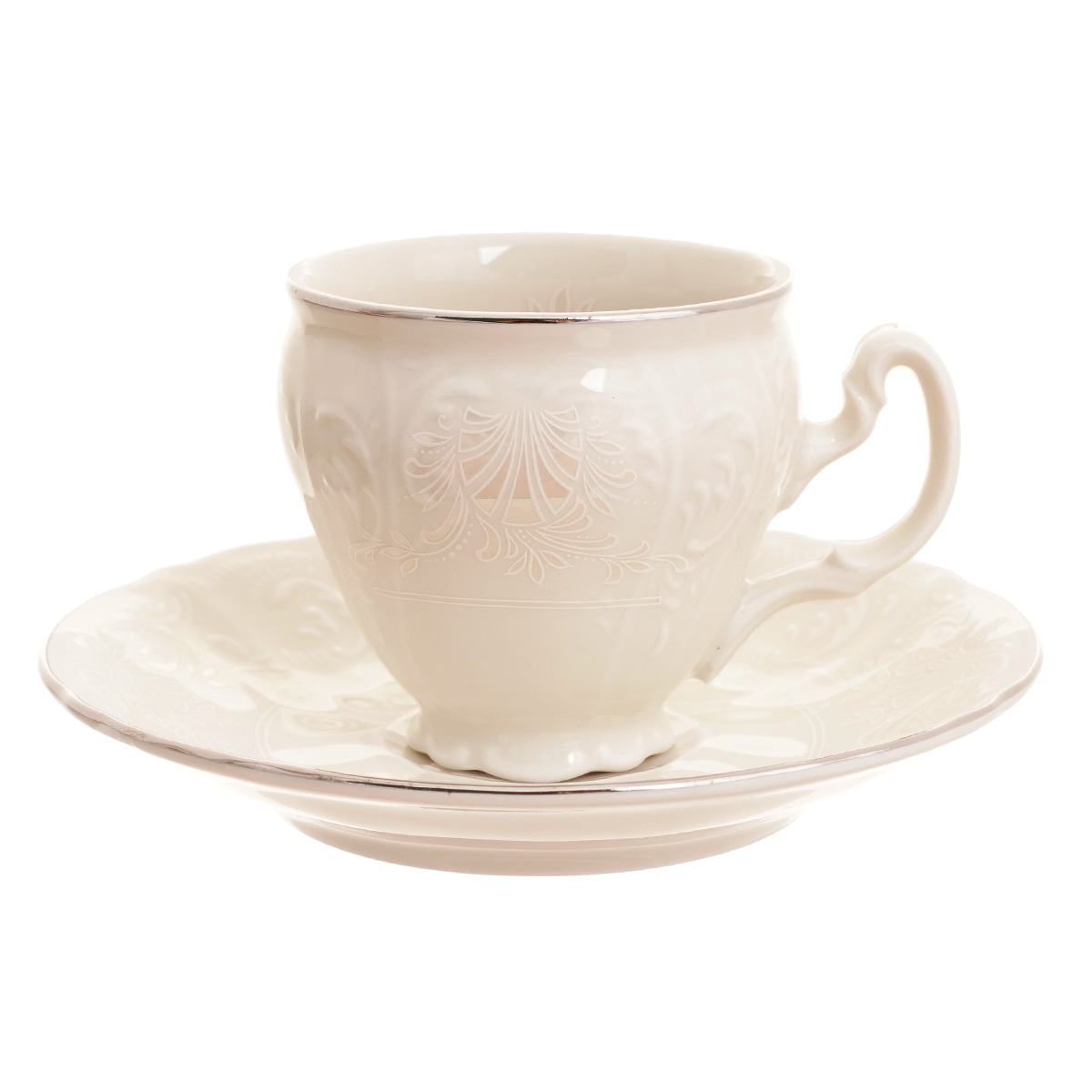 Набор кофейных пар Bernadotte платиновый узор Be-ivory 90мл (6 пар)