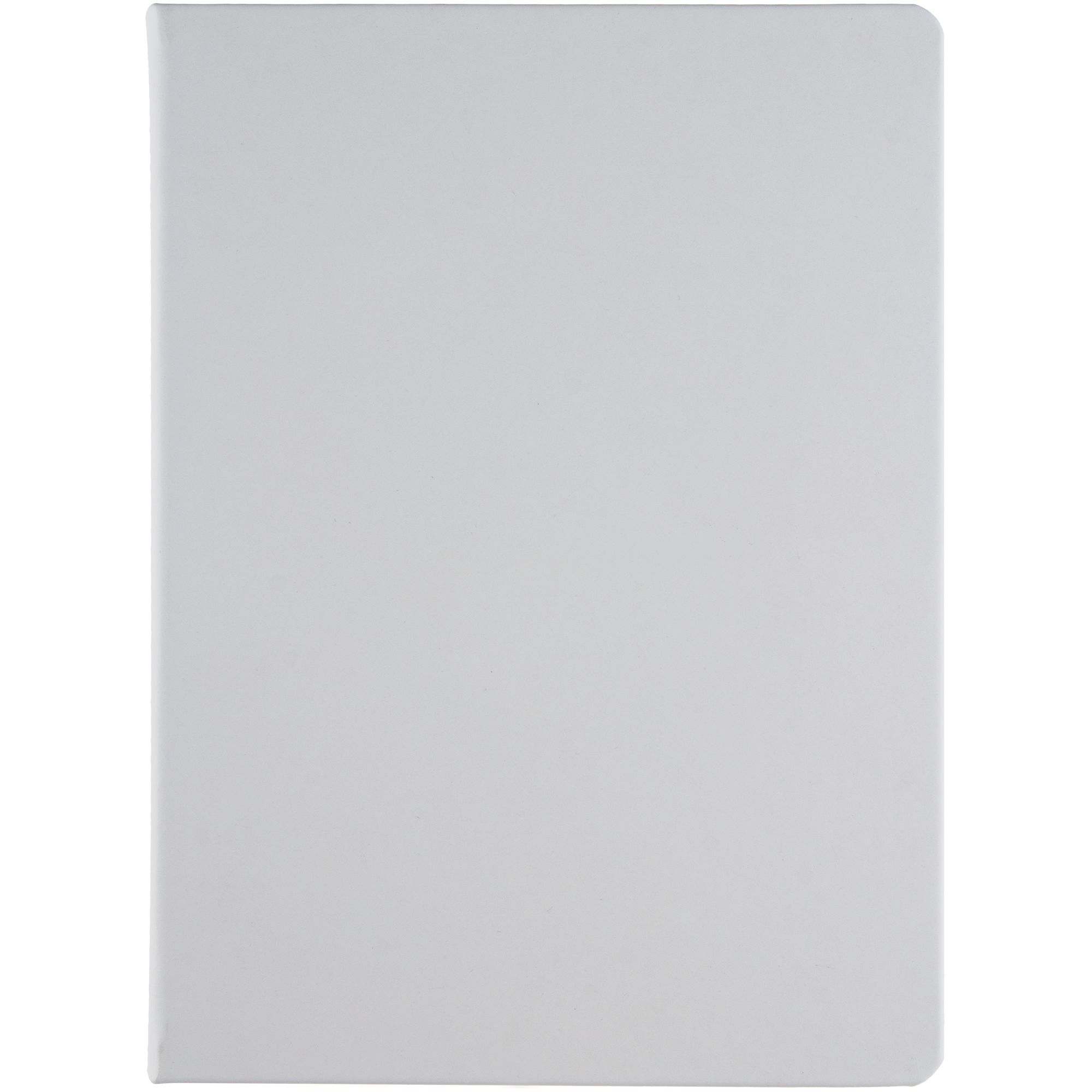 В блокноте скомбинированы материалы Butterfly (лицевая часть обложки) и Brand (задняя часть обложки). Материал Butterfly двухслойный, при блинтовом (слепом) тиснении верхний слой плавится и обесцвечивается, и под ним проступает второй, контрастного цвета.