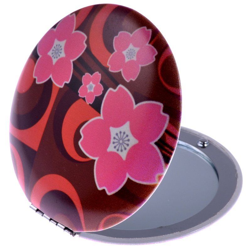 Зеркало Ec Mr 023 компактное в металл корпусе, круглое, цветы