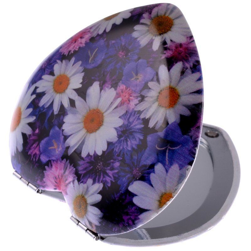 Зеркало Ec Mr 026 компактное в металл корпусе, сердце, цветы