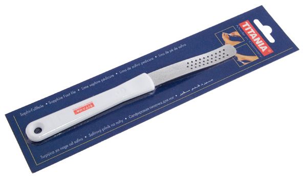 Тёрка 3013 для ног узкая. Бренд: Titania Назначение: Для удаления мозолей и ороговевшей кожи Покрытие: Сапфировая пыль Страна-изготовитель: Германия