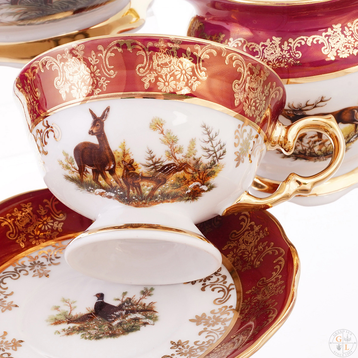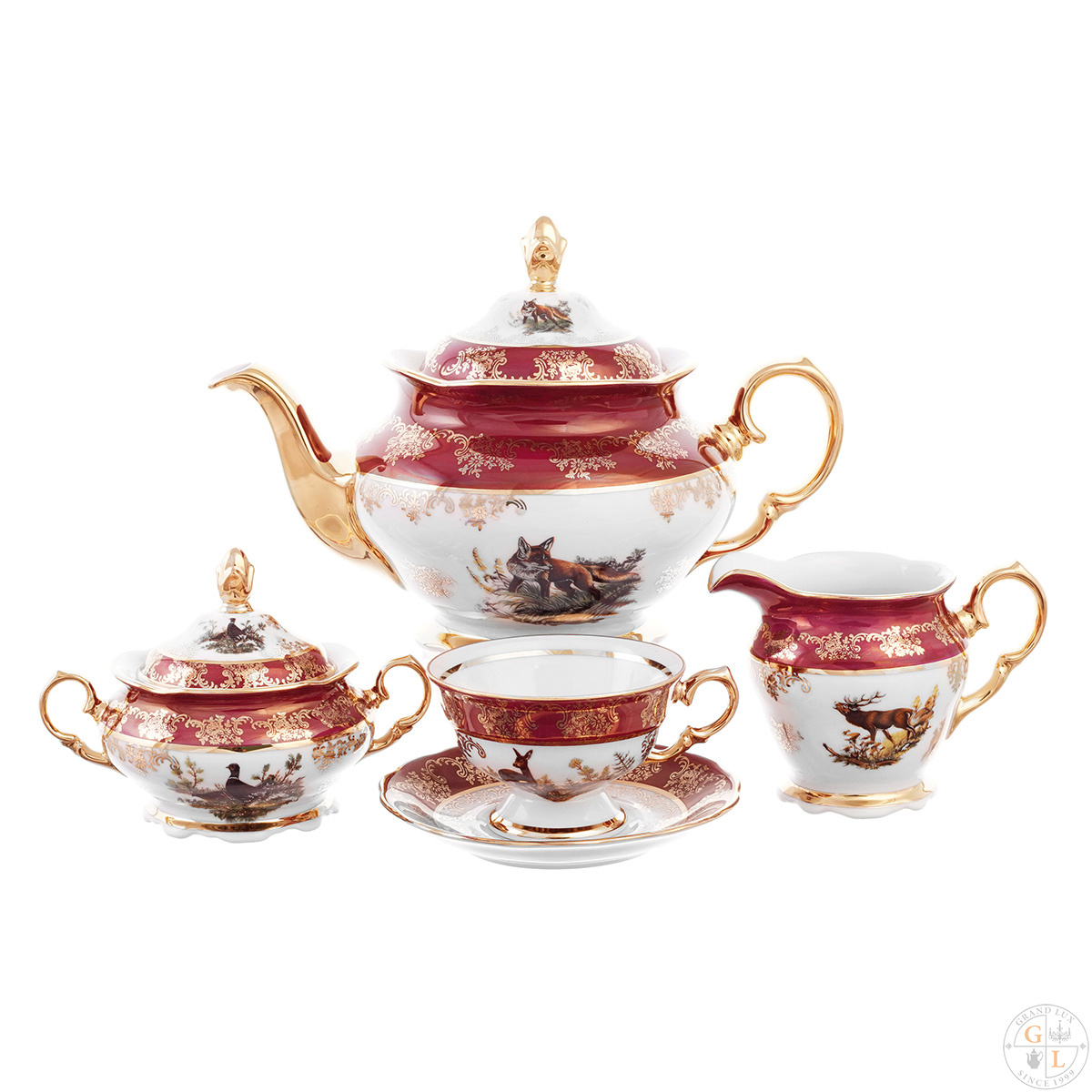 Чайный сервиз Queens Crown охота красная корона 6 персон 17 предметов