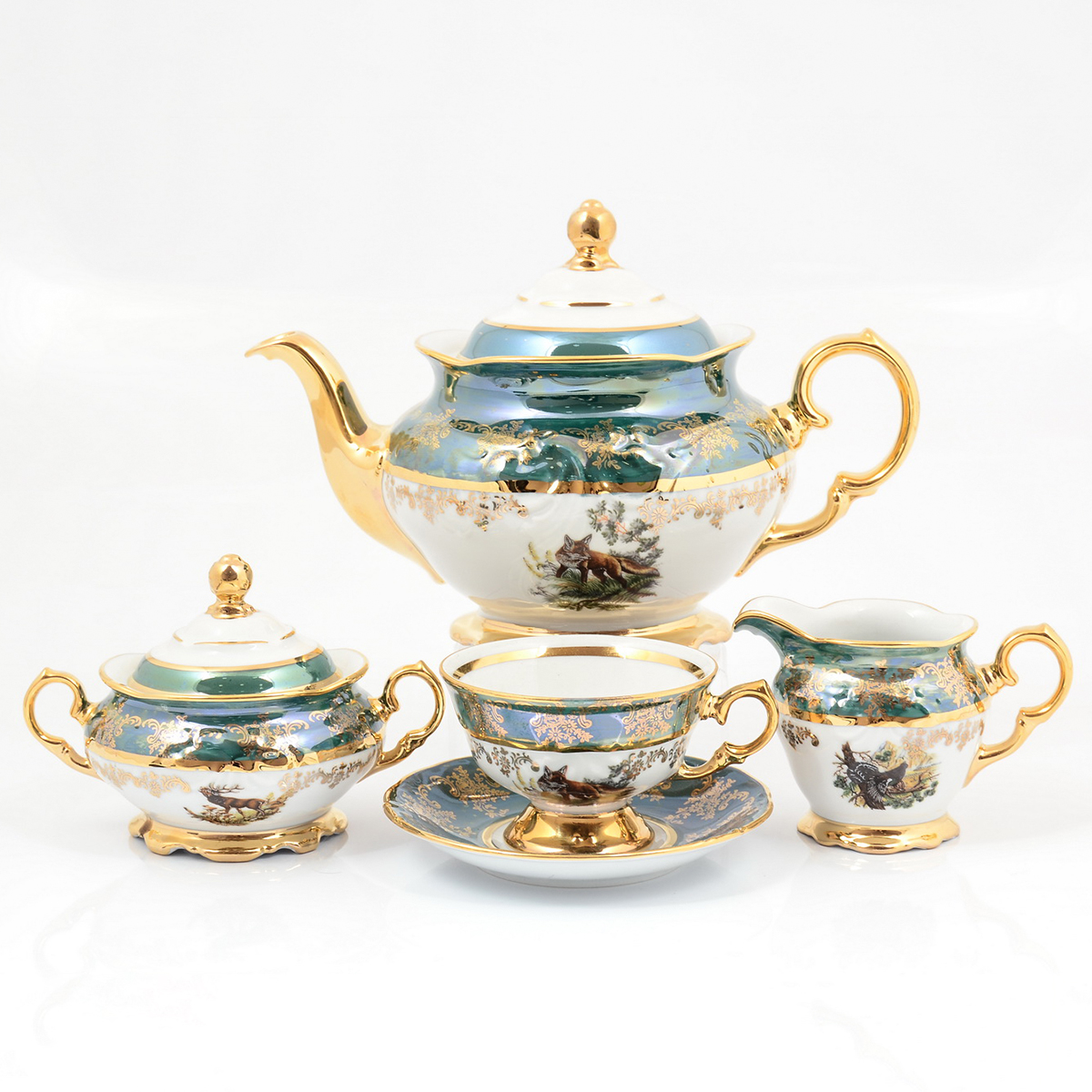 Чайный сервиз на 6 персон Moravec охота зеленая 17 предметов