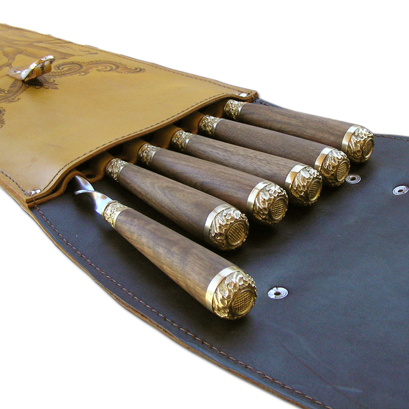 Шампура подарочные 6шт. в колчане из натуральной кожи