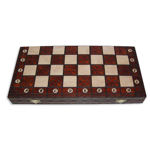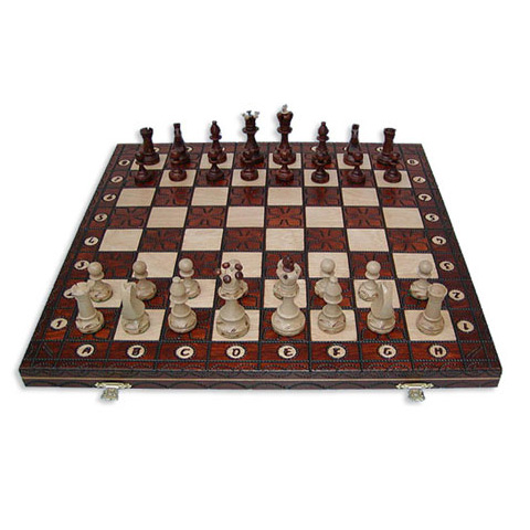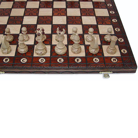 Шахматы юниор 42х42см. Размеры: 42 x 42 x 2,5 см. Вес: 1,7 кг. Материал: береза, велюр. Отделка: жженая доска и фигуры. Материал фигур: дерево, утяжеленные для более высокого уровня устойчивости. Высота короля: 8,5 см. Производство: Польша.