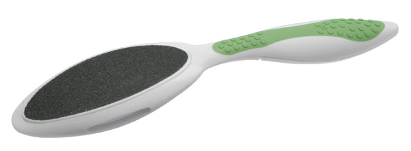 Тёрка для ног эргономичной формы зеленая. Тёрка для ног двусторонняя с наждачной поверхностью эгрономичной формы. Для мягкого и основательного удаления мозолей и ороговевшей кожи. Нескользящая ручка и изогнутая форма позволяют легко удалять мозоли в труднодоступных местах. Для достижения оптимального результата педикюрную тёрку нужно применять на сухой коже - сначала обработать металлической тёркой мозоли и ороговевшие участки кожи, а затем мелкозернистой наждачной поверхностью довести кожу до идеально мягкого состояния. Страна происхождения: Германия Артикул: 3040B Бренд: TITANIA
