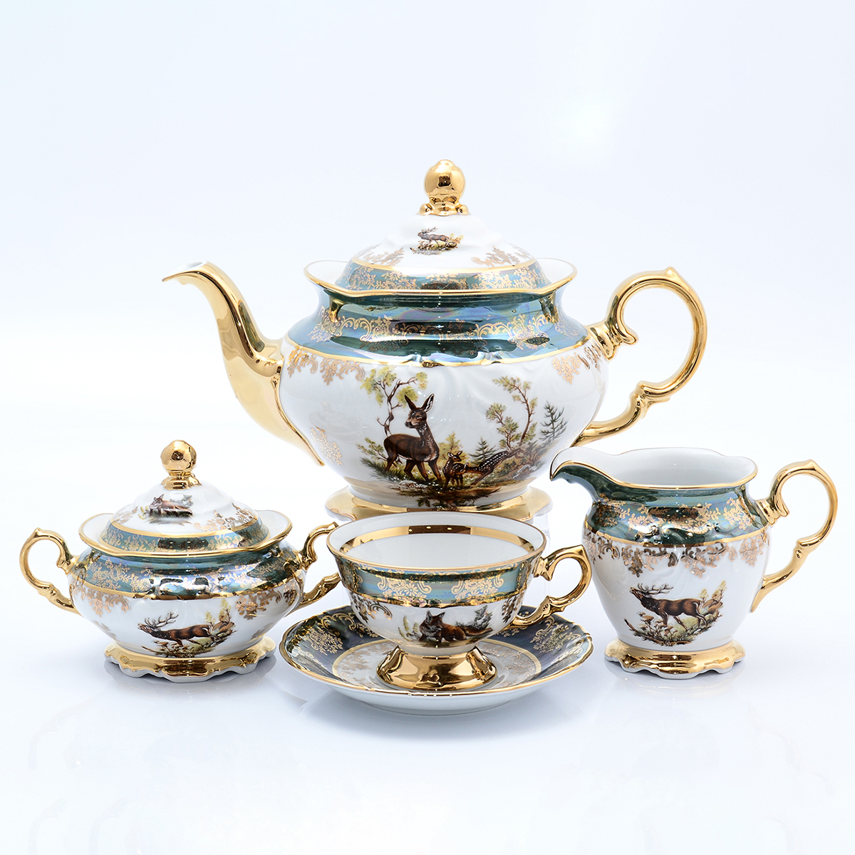 Чайный сервиз на 6 персон Queens Crown корона охота зеленая 15 предметов