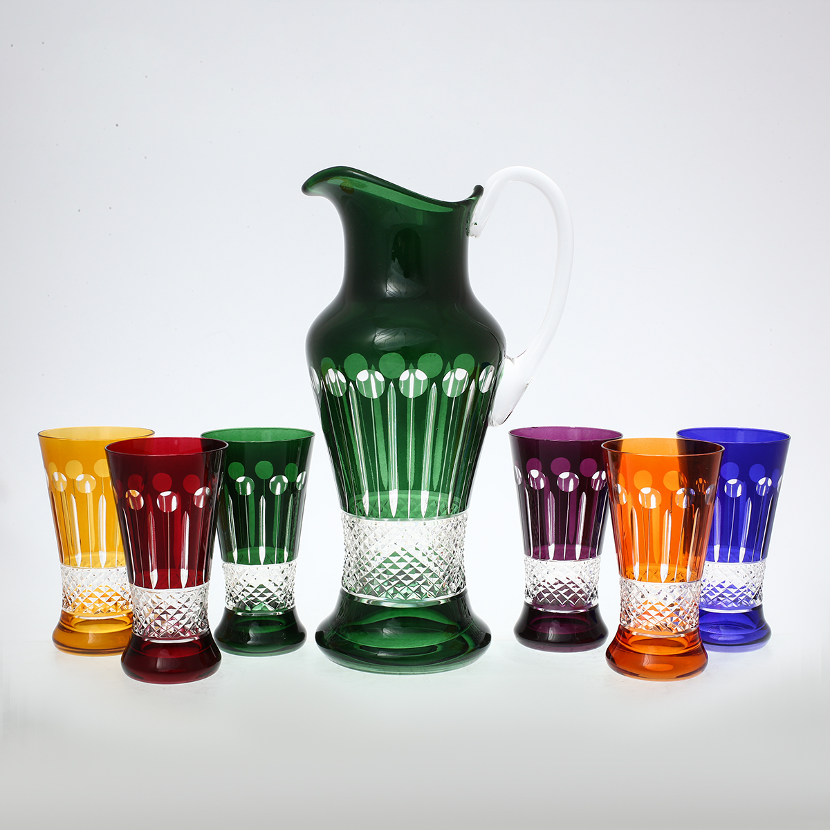 Набор 7 предметов графин и стаканы цветной хрусталь
