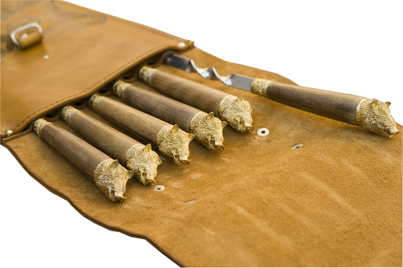 307кк6 шампура подарочные 6 шт. в колчане из натуральной кожи (кабан)
