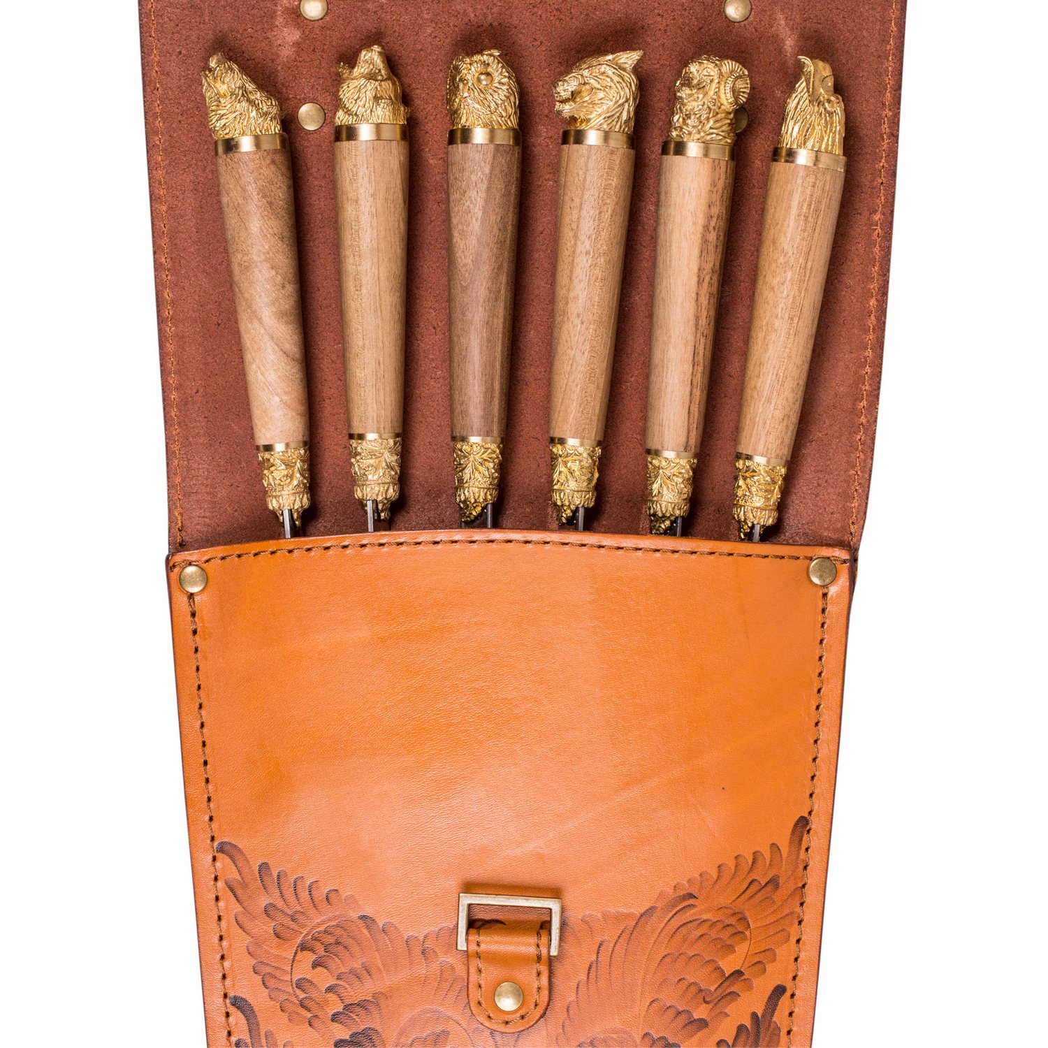 Шампура подарочные 6шт. в колчане из натуральной кожи