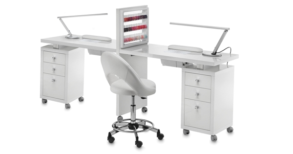 Стол маникюрный 309 lx display. Маникюрный стол с двумя тумбами на два рабочих места. Маникюрный стол оснащен двусторонней витриной с тремя полками из оргстекла. Доступ для лаков и инструментов есть у каждого мастера. Витрина имеет размер 41x35 см и позволяет разместить около 40 флаконов. Тумбы маникюрного стола оснащены тремя выдвижными ящиками и колесами со стопорами для удобства перемещения. В комплекте: лампы, валики маникюрные, подставки под лаки, вытяжки AR5 Superturbo 60W. Цвет: - белый лак. Вес: 106 кг; Объем: 0,66 м³. Размер (ДхШхВ): 227х50х79 см Стоимость модели, представленной на фото, может отличаться от цены, указанной на сайте. Артикул: 309 LX display Бренд: Artecno