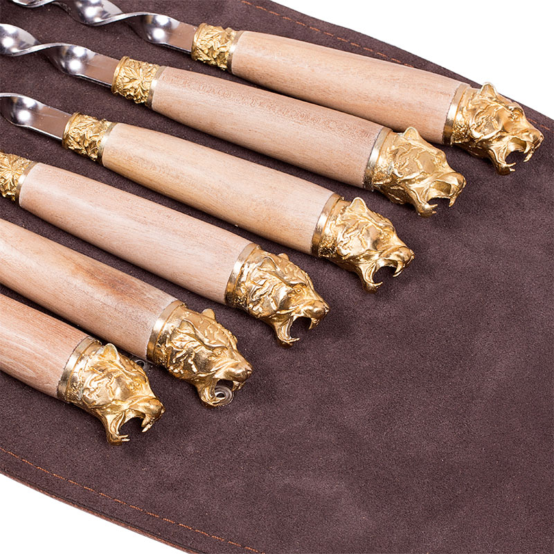 309кк6 шампура подарочные (тигры) 6шт. в колчане из натуральной кожи