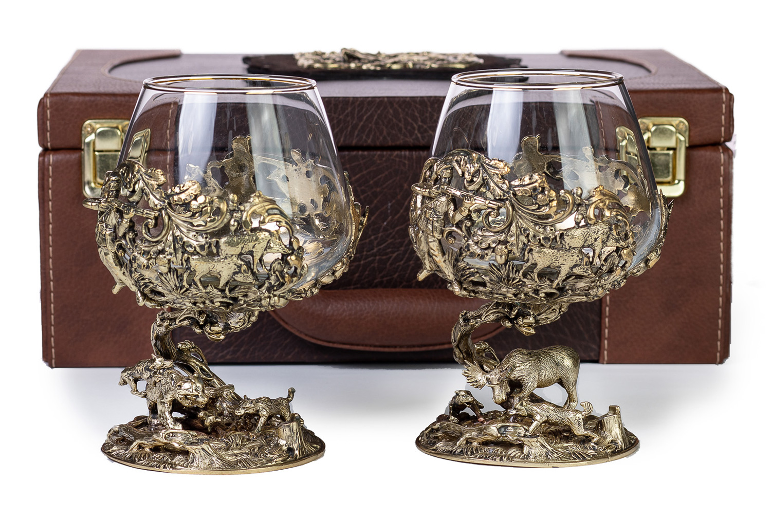 Бокалы охота элит 2шт (медведь, лось) (уп. кожа)