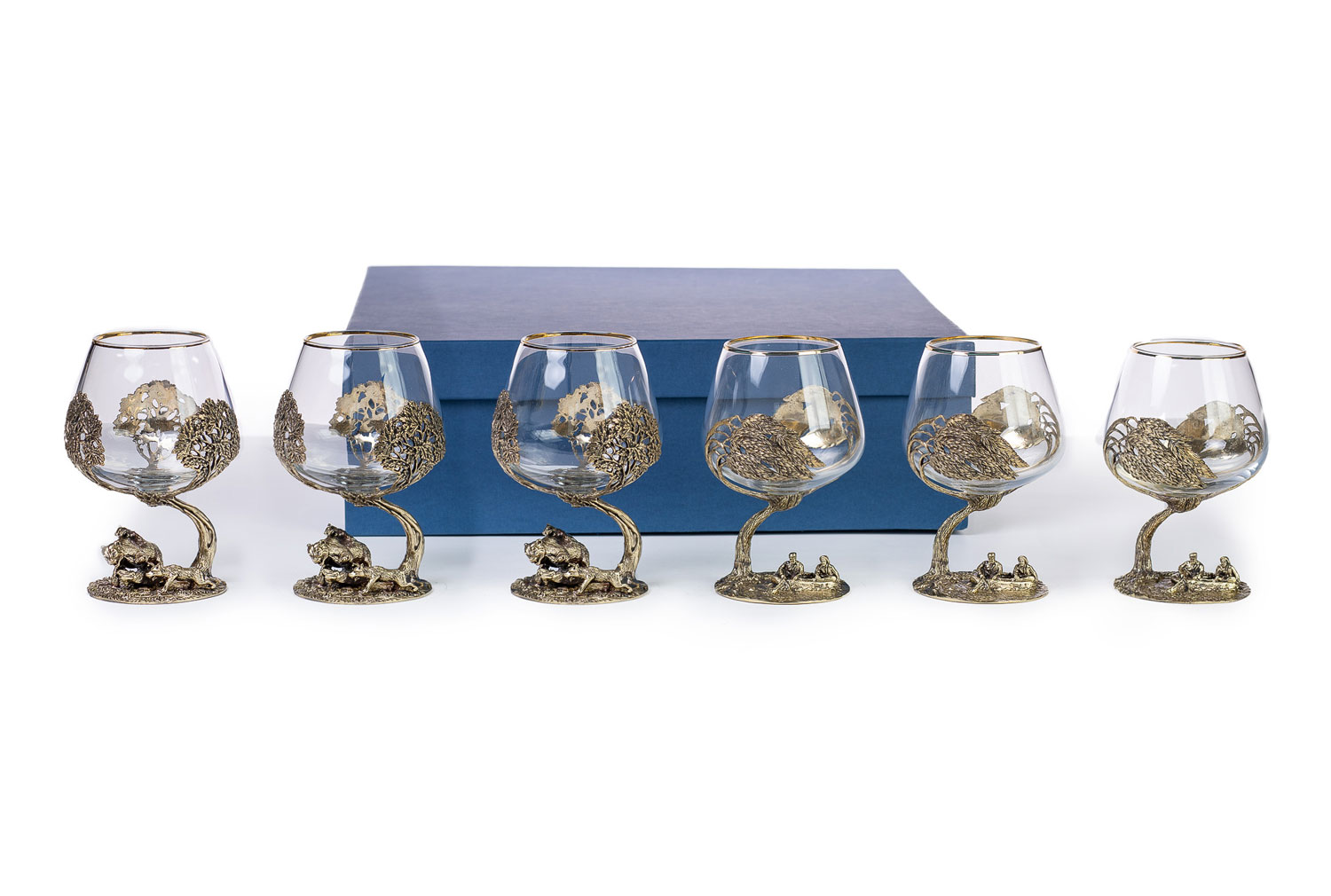 Бокалы охота 6 шт рыбалка-медведь (уп. кожа)