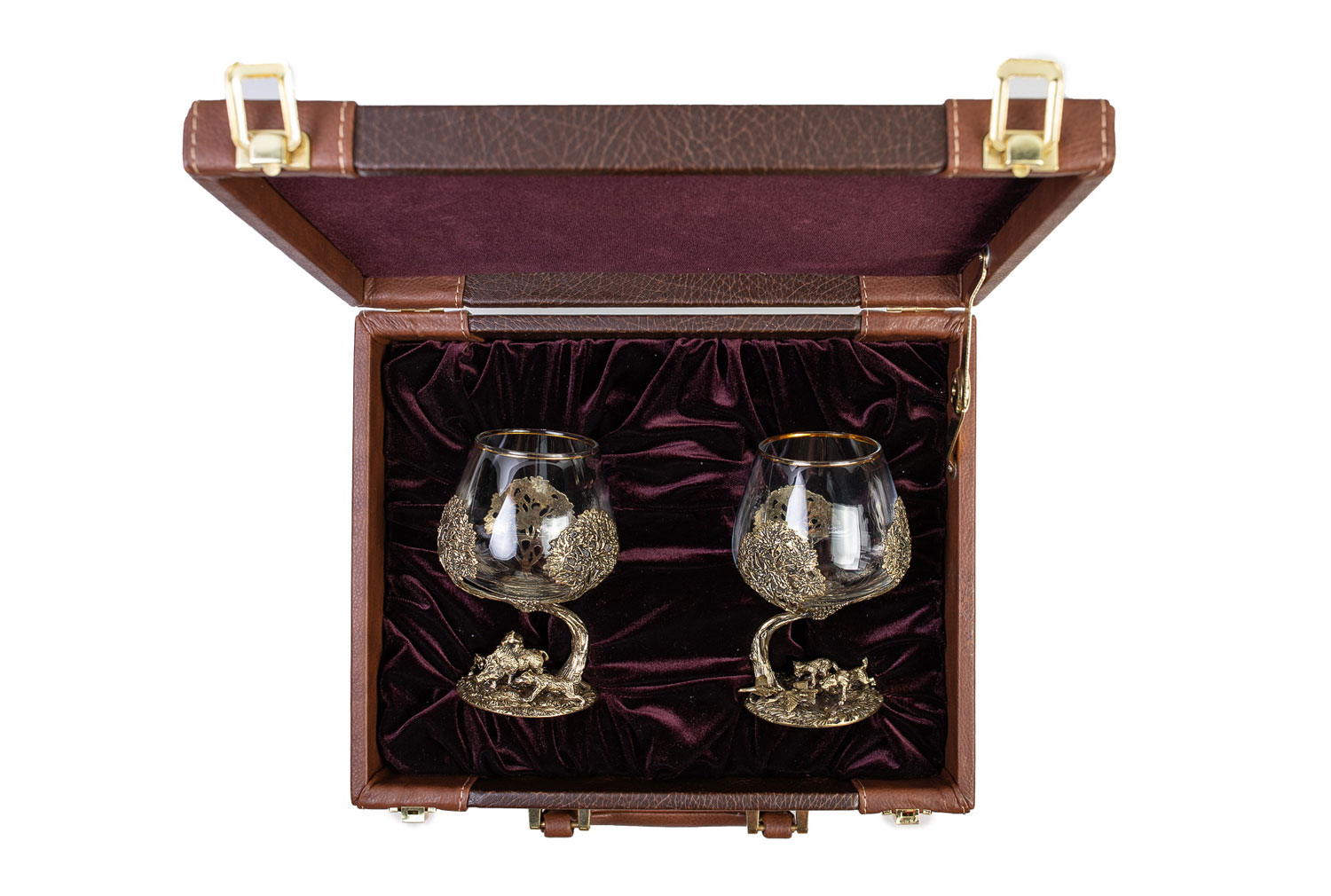 Бокалы охота 2 шт кабан-утки (уп. кожа)