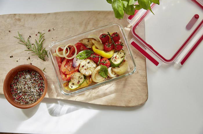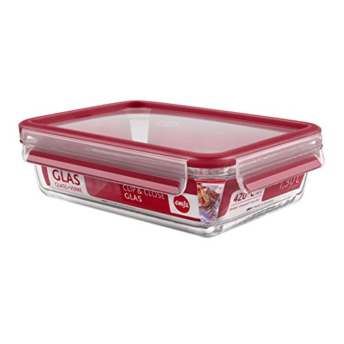 Контейнер пищевой 1,3л прямоугольный Clip&close Glass Emsa, красный