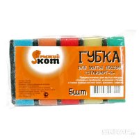 Губка для посуды. Губки из поролона с фиброй Стандарт #40;5шт #41; размер: 75*45*25мм материал: поролон, фибра упаковка: пакет Набор состоит из 5 поролоновых разноцветных губок с абразивным чистящим слоем, который не крошится и не отслаивается от губки. Мягкий слой - для деликатного мытья; жесткий слой - для сильных загрязнений.  развернуть описание ▼