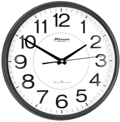 Черные настенные часы MRN 3113A CHB имеют надежный кварцевый механизм.