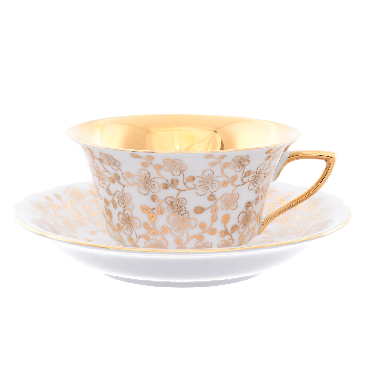 Чашка с блюдцем 150 мл виндзор золотые цветы, белый