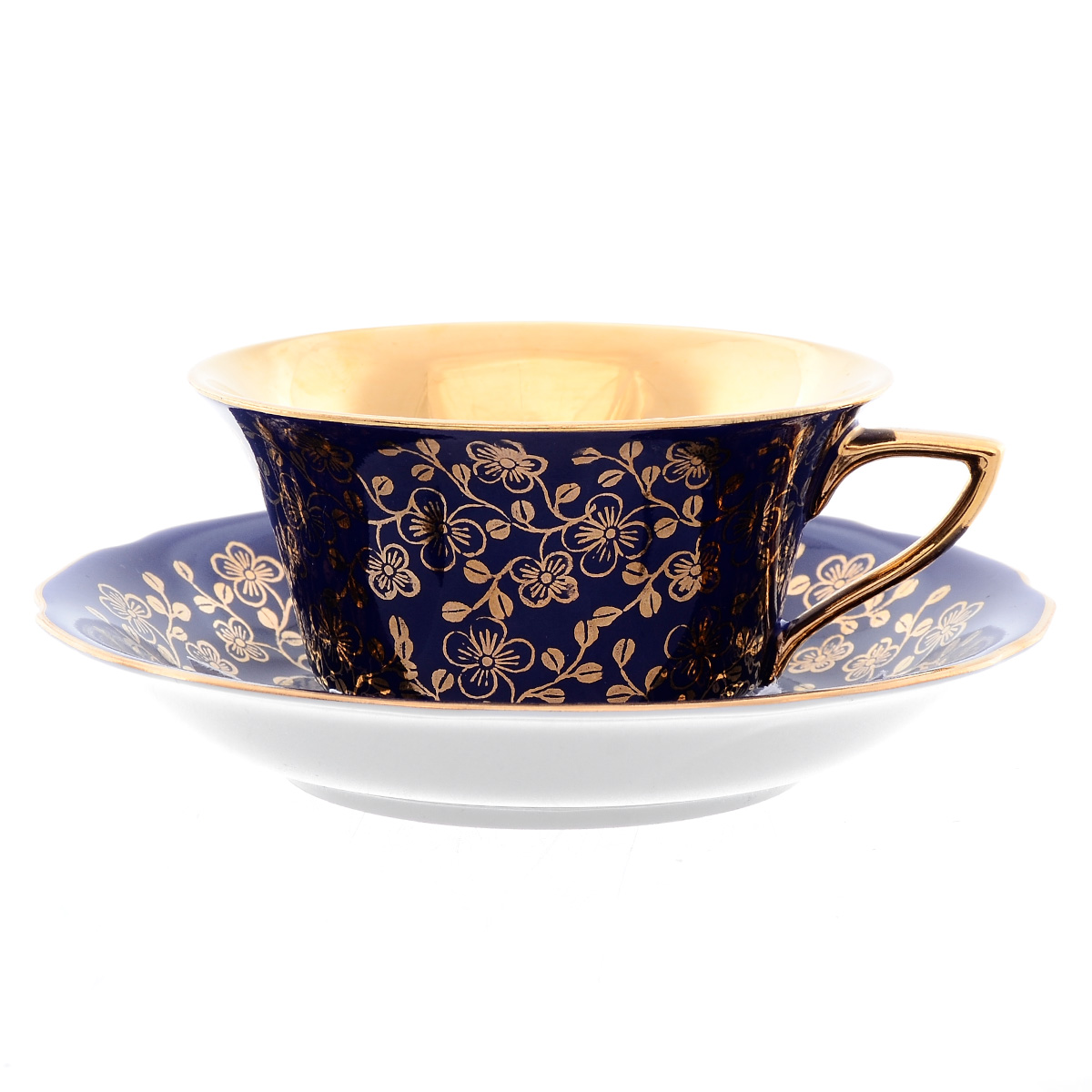 Чашка с блюдцем 150 мл виндзор золотые цветы, синий