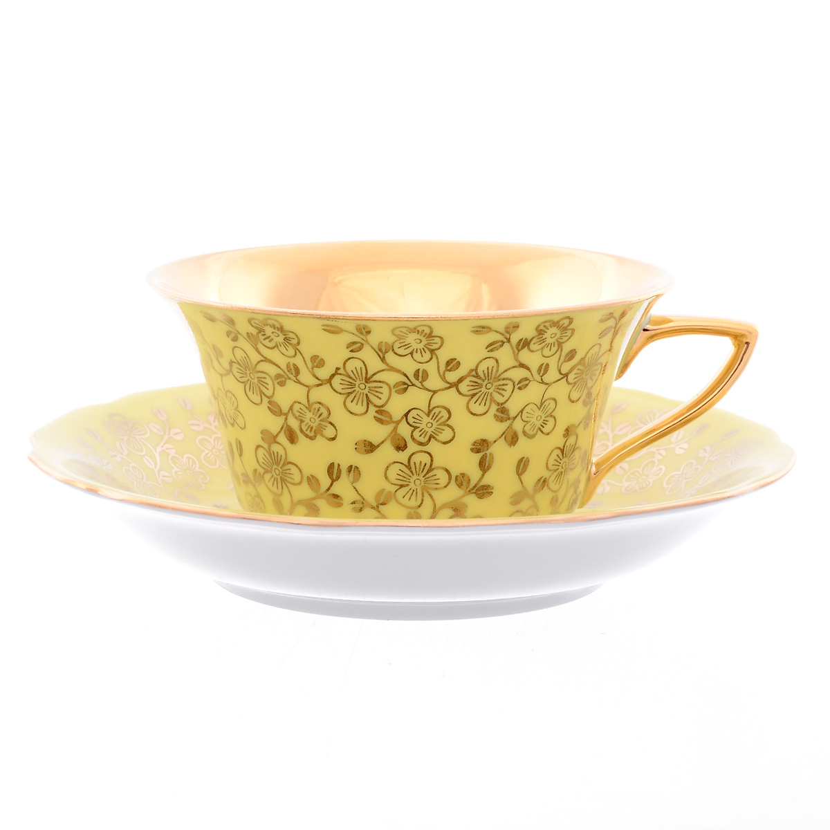 Чашка с блюдцем 150 мл виндзор золотые цветы, желтый