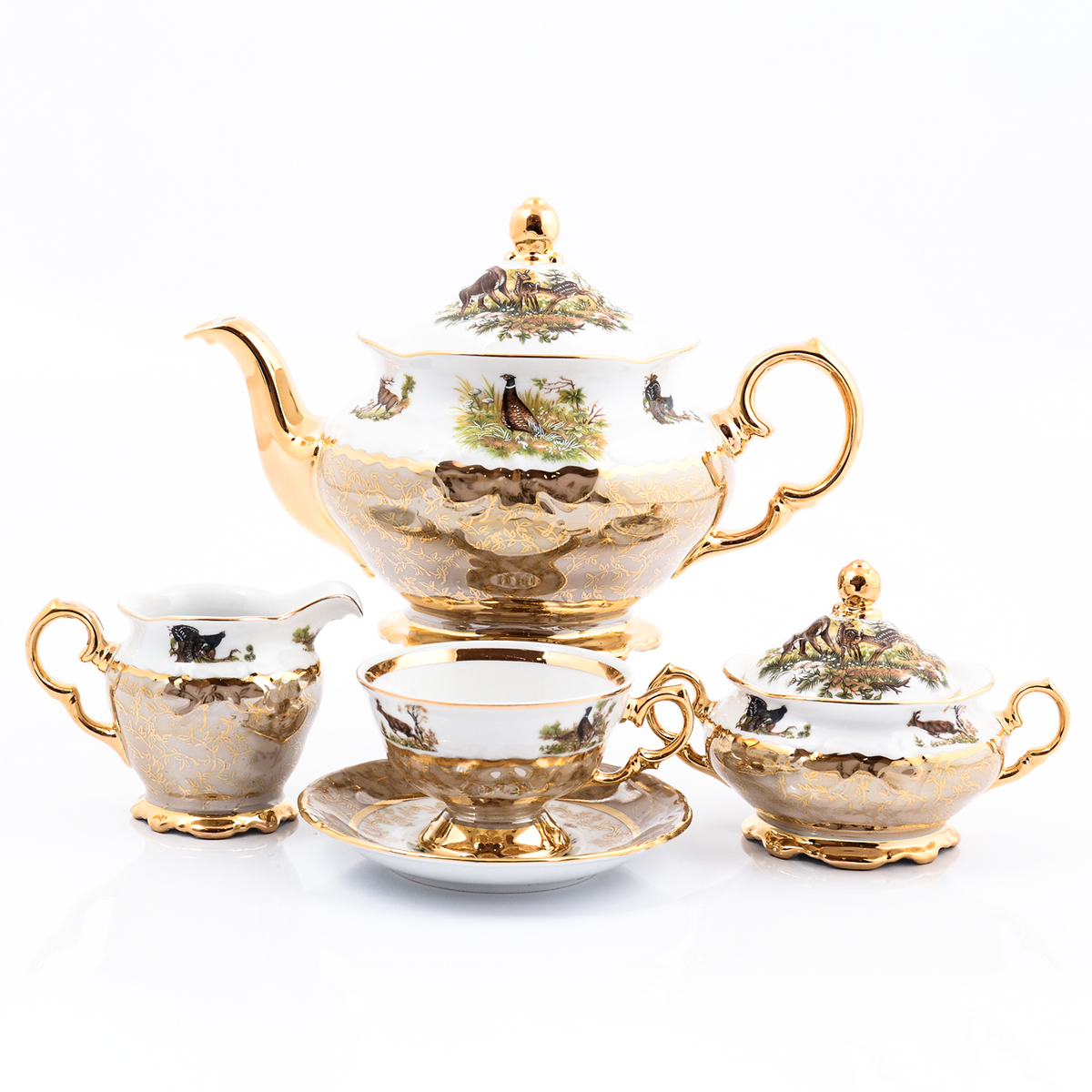 Чайный сервиз на 6 персон 17 предметов охота бежевая Sterne Porcelan