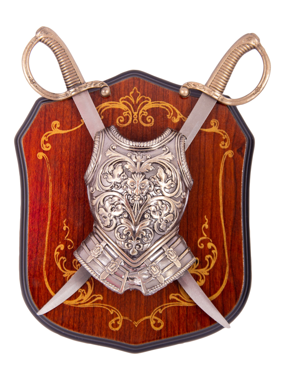 Коллаж "рыцарские трофеи" 17*26см. Артикул: 31528 Материал: Пластик Назначение: Гостиная, Дача, Кабинет, Прихожая, Спальная Направленность: VIP, Мужские, Ретро-подарки Праздник: 23 февраля, День ВМФ, День милиции Сертификация: Товар не подлежит обязательной сертификации. Состав: МДФ, пластик, эл.металла.
