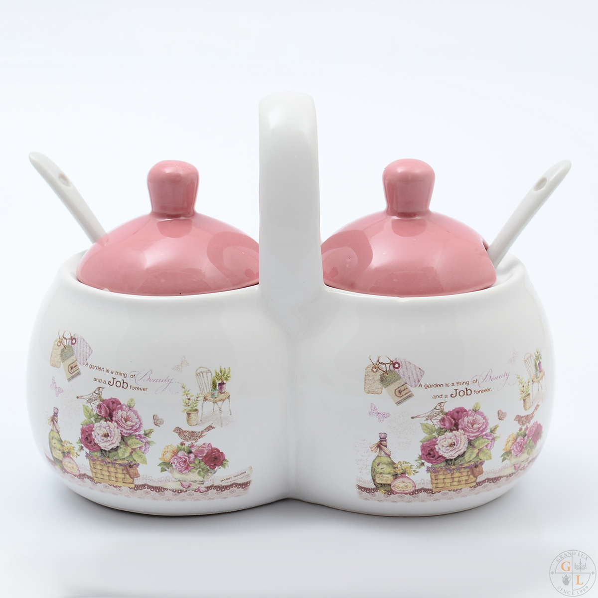Банка для специй с ложками Royal Classics Цветы. Много цветов: пышные соцветия аметистовых пионов, которые нашли приют в плетеной корзинке. Этот декор вносит какой-то необъяснимый уют и очарование в ваши семейные посиделки за накрытым столом. Сдвоенные баночки дополнены удобными мерными ложками из фарфора. А в середине – удобная ручка для подачи к столу. Необычно, практично, эстетично! 2*250 МЛ. + 2 ЛОЖКИ 15,6*9*12 СМ.
