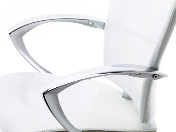 Кресло для клиента, каркас кресла изготовлен из многослойной фанеры, выполнен из высококачественного полиуретана. Кресло оснащено литыми алюминиевыми подлокотниками, отполированными и хромированными (снаружи). Обивка - искусственная кожа высшего качества.
