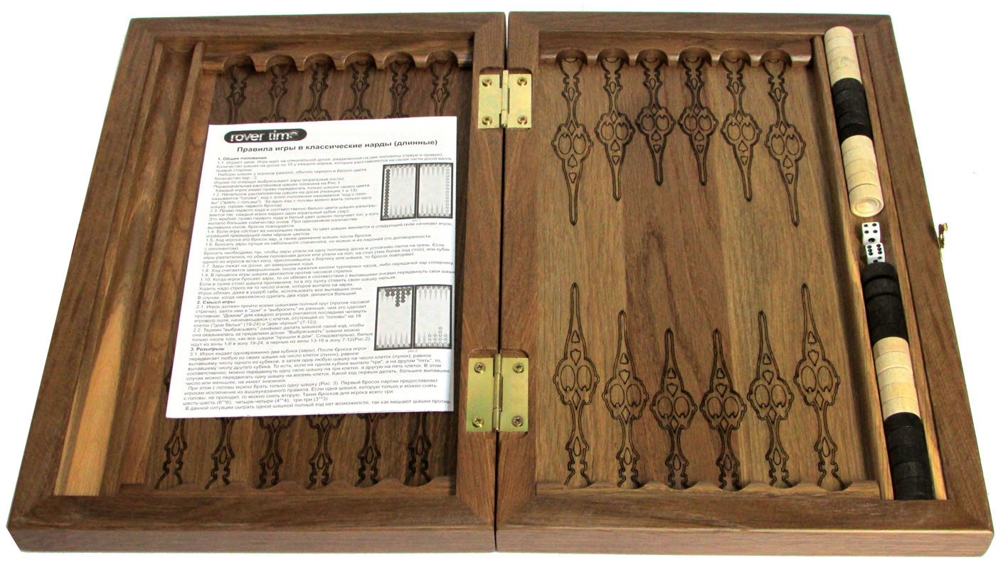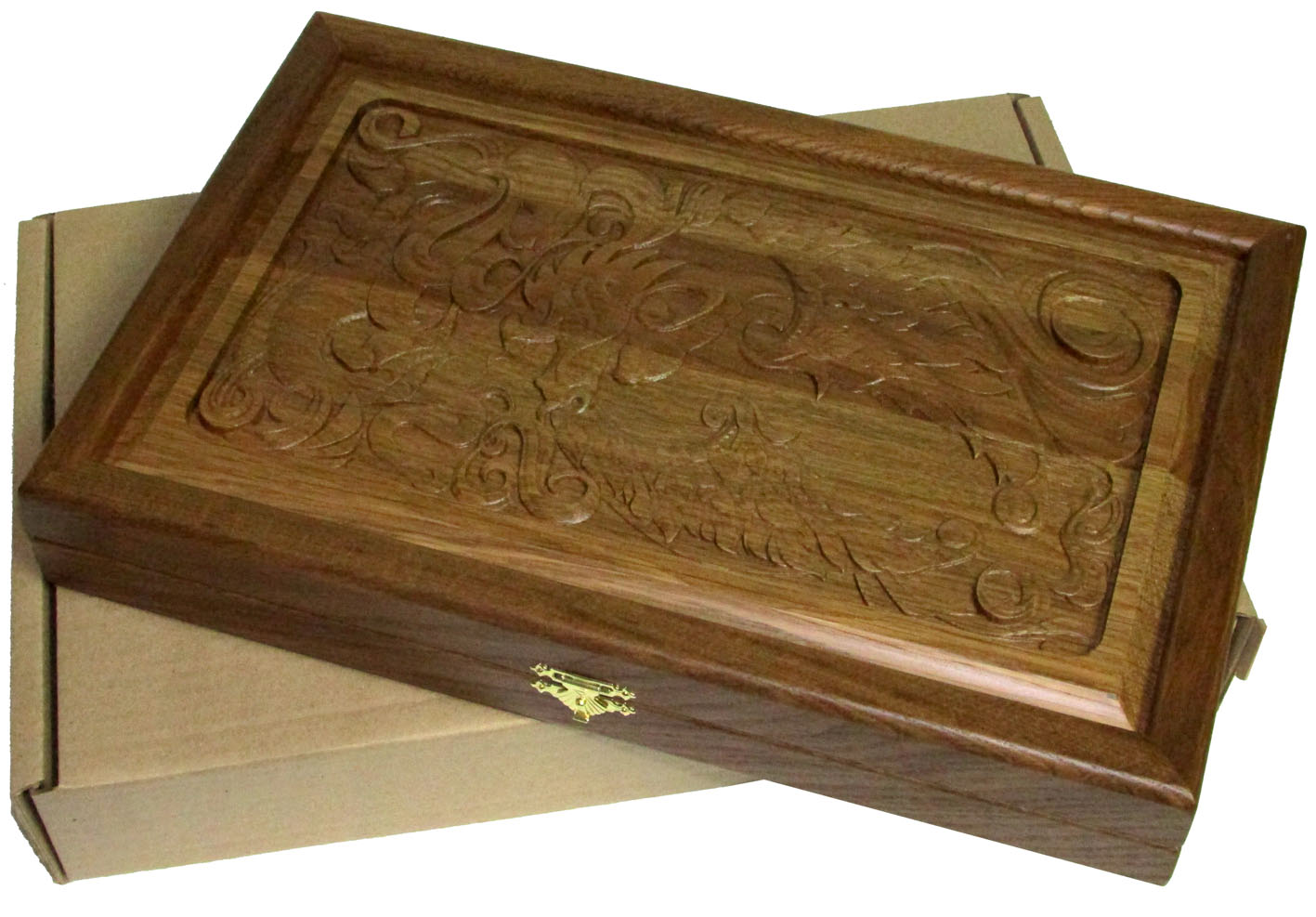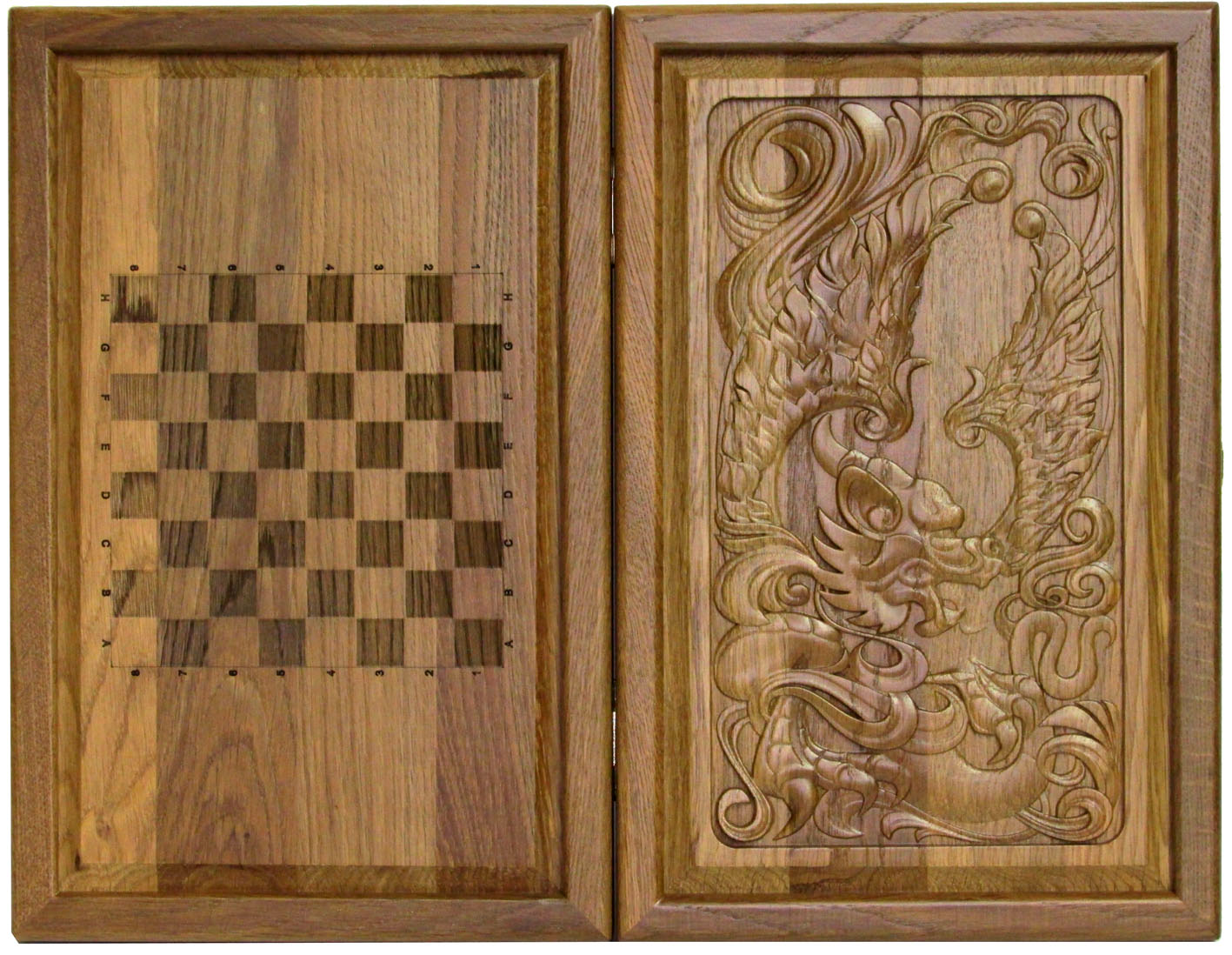 Резные объемные нарды+шашки дорожного размера из массива мореного дуба &qu. Артикул: 32-14 Наименование: Резные объемные нарды+шашки дорожного размера из массива мореного дуба Дракон Размер: 36 х 46 см Описание: Материал: Мореный дуб Технология: Резьба по массивуОдна из лучших досок дорожного размера. Размер не самый маленький (встречаются нарды и меньших размеров), однако нашей целью было создать нарды минимального из УДОБНЫХ размеров. Эта доска соответствует всем основным запросам любителей игры в нарды: - Деревянные фишки из массива березы с углублением по центру легко перемещаются пальцами. Диаметр фишки 19 мм - Возможность выставить все фишки вдоль края поля, что важно при игре в длинные нарды - Удобные ячейки из массива мореного дуба - Ложемент для хранения фишек и костей по краю поля С внешней стороны на лицевой филенке вырезан объемный дракон. На оборотной филенке вырезана доска для игры в шашки. Упаковка: транспортная картонная коробка. ВАЖНО: Нарды будут иметь такой же резной рисунок, у них будет такая же фурнитура и точно так же будут выделены стрелки на поле, НО рисунок дерева неповторим. Поэтому Вы не сможете получить точно такие же нарды, как на сайте. Для того, чтобы игра в нарды доставила Вам еще большее удовольствие, предлагаем заменить фишки штатной комплектации на изысканные фишки из экзотического самшита и золотистого розового дерева, диаметром 19 мм, которые помогут дополнить эту игру еще и замечательным звучанием драгоценных пород деревьев.