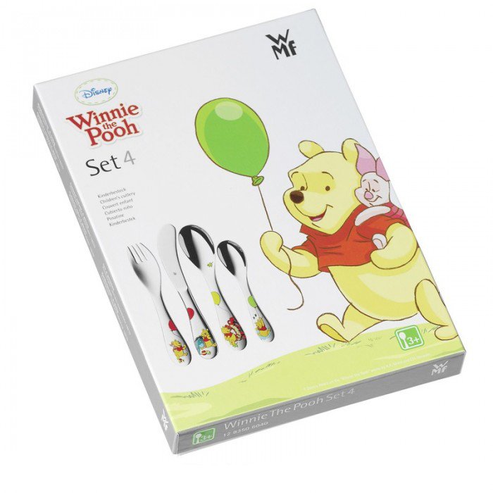 Набор детских столовых приборов 4 предмета winnie the pooh wmf. Бренд: WMF Страна: Германия Описание: В набор входит: 1 детский нож 1 детская вилка 1 детская ложка 1 детская чайная ложка Все слышали о Винни-Пухе, ужасно любящим мёд медведе! У детей будет в два раза больше удовольствия, когда Винни за столом. Набор WMF Winnie the Pooh состоит из приборов из нержавеющей коррозийностойкой стали 18/10, а также детского фарфора, состоящего из тарелки и чаши. На всех предметах нанесены восхитительные рисунки по мотивам Винни-Пуха и адаптированы в соответствии с пропорциями и моторными навыками детей в возрасте старше трех лет. Излишне говорить, что все предметы безопасны для использования в посудомоечных машинах.