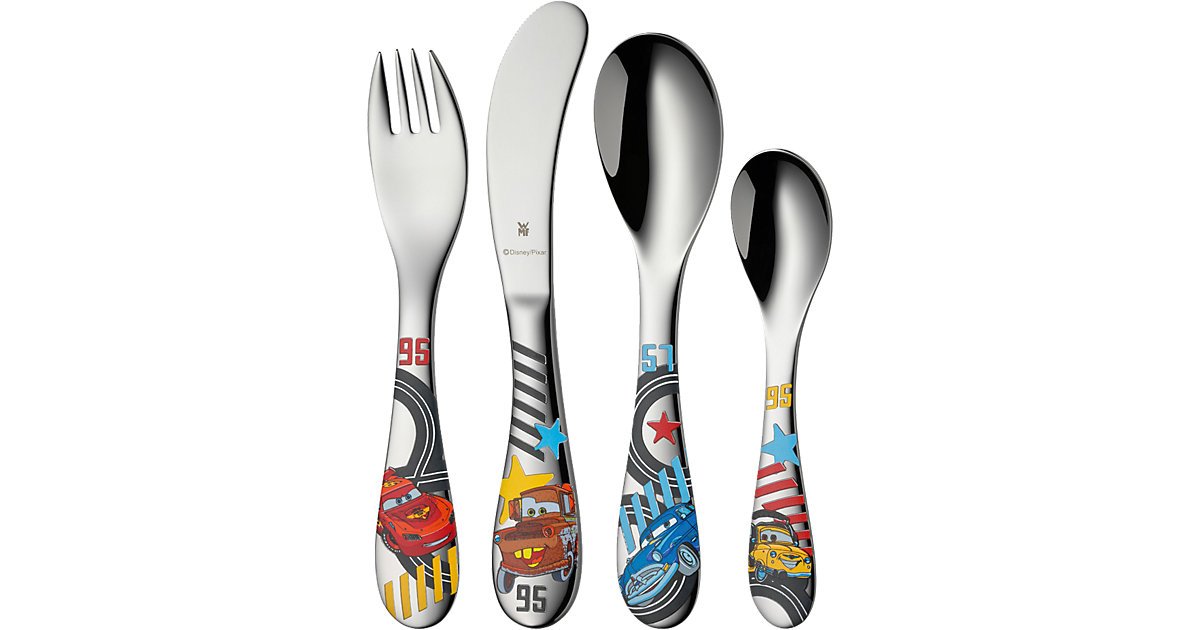 Набор детских столовых приборов 4 предмета cars wmf. Бренд: WMF Страна: Германия Описание: В набор входит: 1 детский нож 1 детская вилка 1 детская ложка 1 детская чайная ложка Набор столовых приборов "Cars" от компании WMF порадует безудержную фантазию непоседливого шалуна, создавая атмосферу настоящего ралли-марафона. Маленький познаватель мира получит необыкновенное удовольствие, оказавшись чемпионом гоночного спорта наслаждаясь своей трапезой. Полированное покрытие Cromargan® обладает защитными свойствами - устойчивое к кислотам, не имеет запаха и вкуса. Изделие изготовлено из высококачественной нержавеющей стали 18/10, обладает идеальным балансом и подходящим размером для маленьких рук, легко чистится и не требует особого ухода. Столовые приборы можно мыть в посудомоечной машинке.
